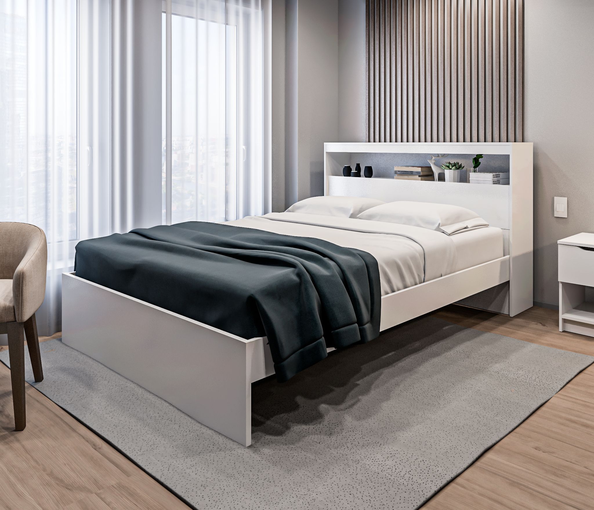 Размеры кровати (ШхВхГ) 206х103х266 см
