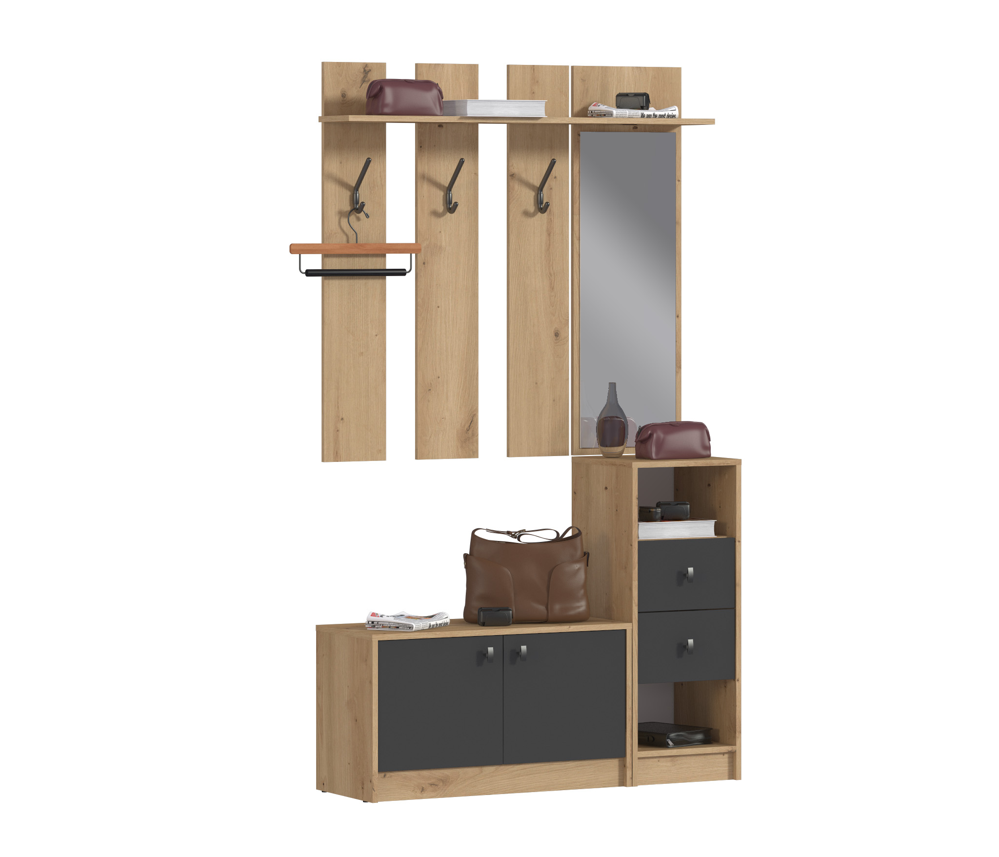 Модульная конструкция "Сидней" разработана для небольших помещений. Каждый модуль оптимизирован для экономии места, предлагая максимальную функциональность на минимальной площади. Вы можете создать свой собственный вариант прихожей, подбирая модули в соответствии с вашими потребностями и предпочтениями.