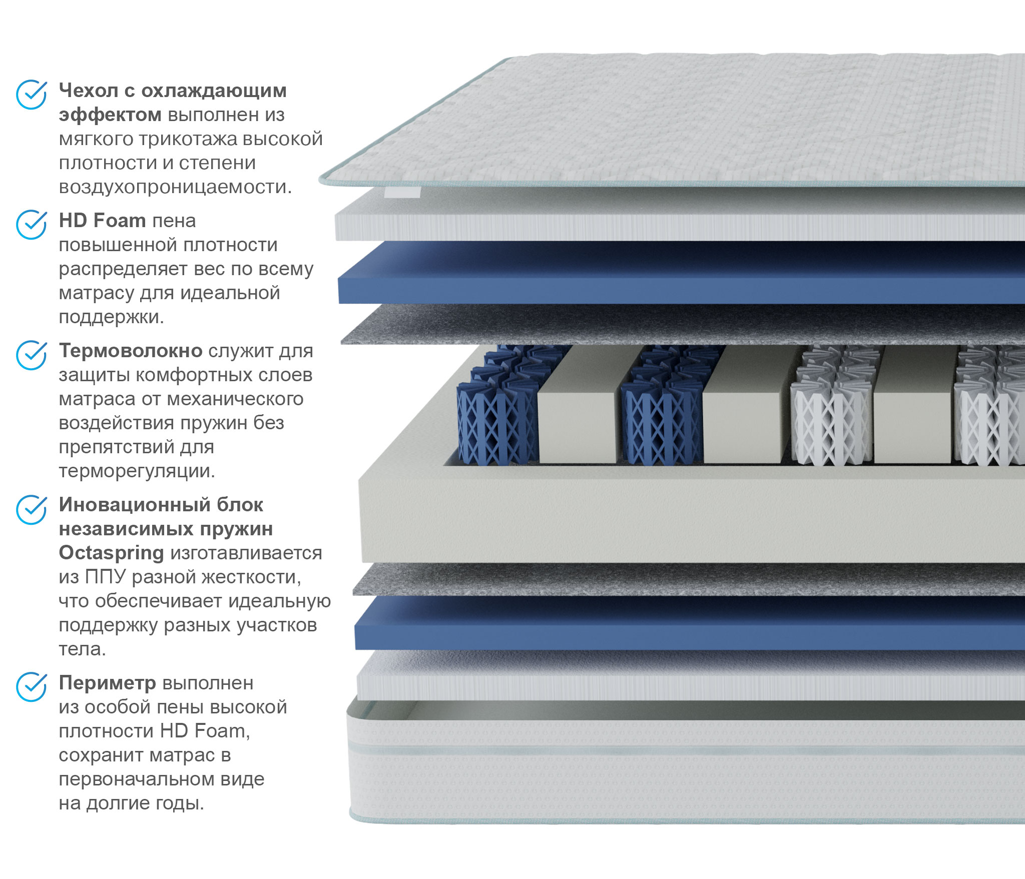 Респект – пенный матрас с инновационной пружиной Octaspring из высокоплотной пены,