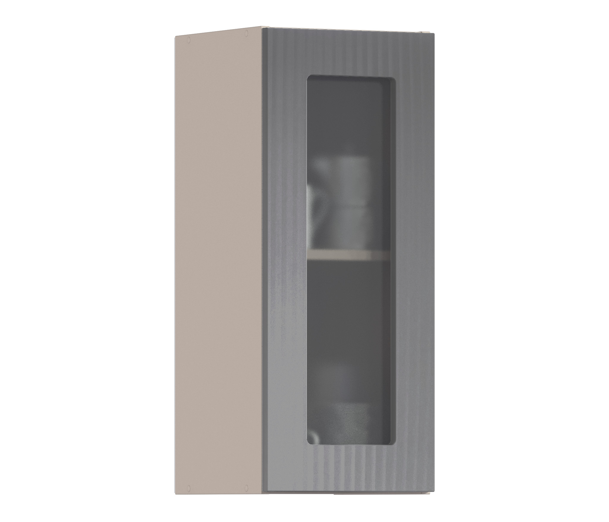 Роял шкаф навесной со стеклом 1 дв 30х72 см (Песочный/Графит)