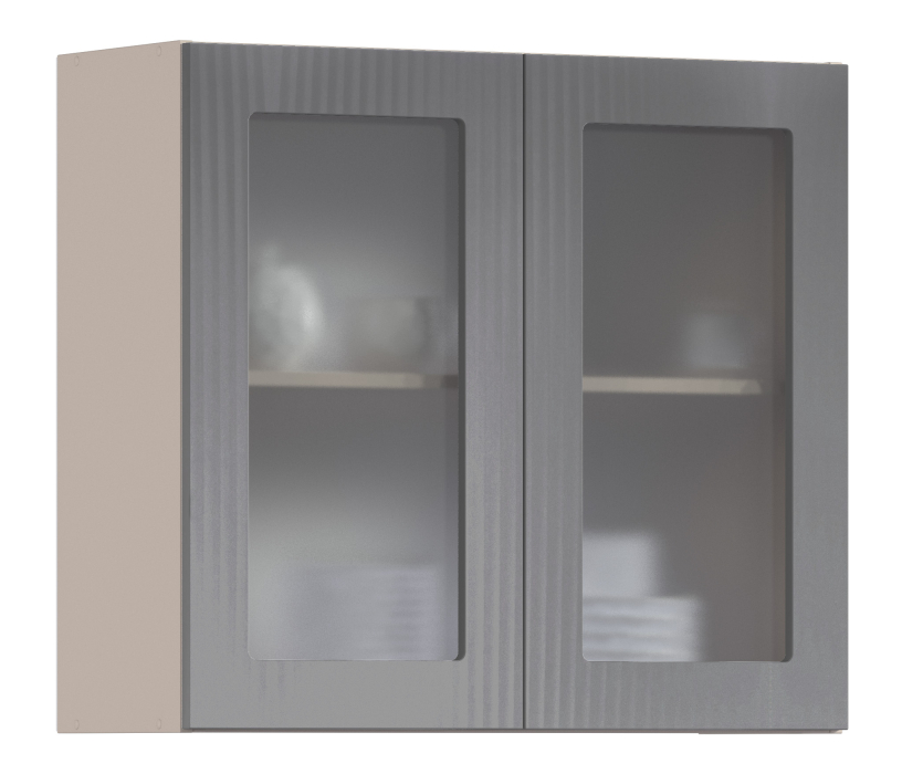 Роял шкаф навесной со стеклом 2 дв 80х72 см (Песочный/Графит)