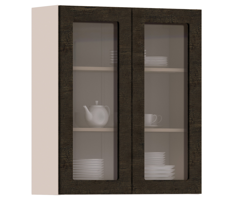 Регина шкаф навесной со стеклом 2 дв 80х93 см (Акация темная)