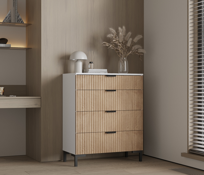 Комод Тренд СБ-3444 4 ящика Белый Альпийский/МДФ Джаз Акация светлая Код 00000331048