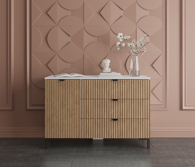 Комод Тренд СБ-3446 3 ящика, 1 дверь Белый Альпийский/МДФ Джаз Акация светлая Код 00000331050