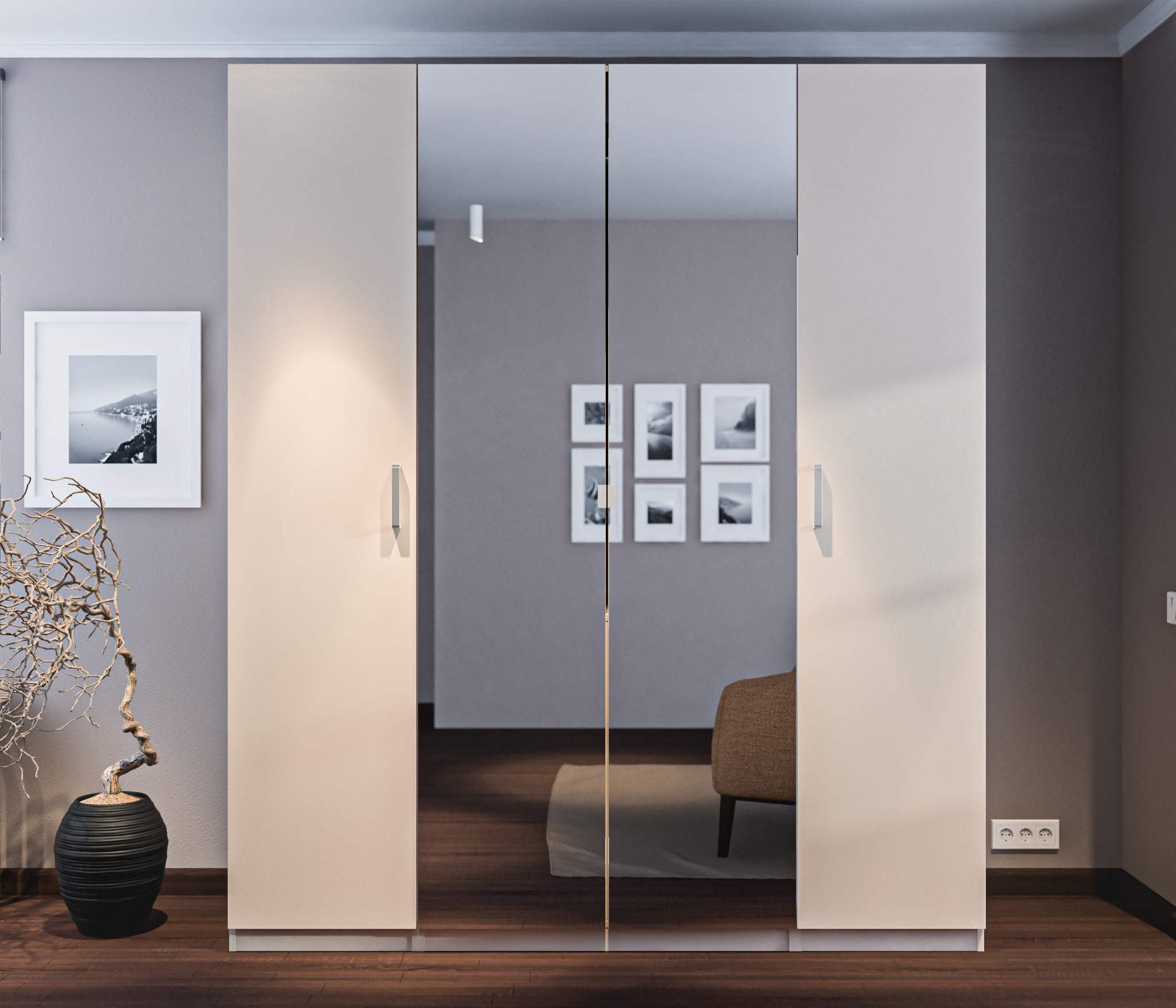 Шкаф четырехдверный МАКС с зеркалом Кашемир серый (Кашемир серый)