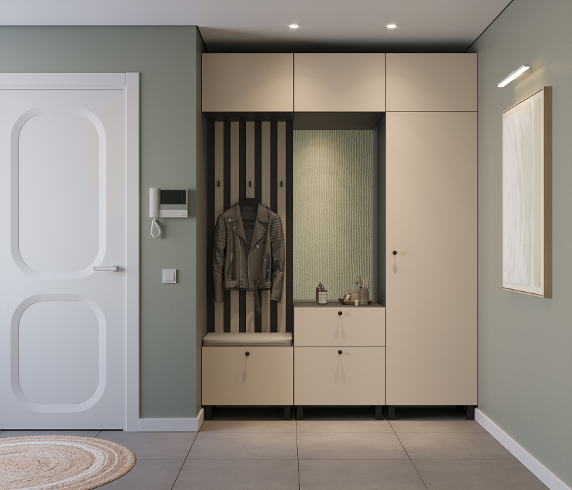 Прихожая Тренд с антресолью и рейками Диамант серый/Белла Кашемир серый Код 00000331304