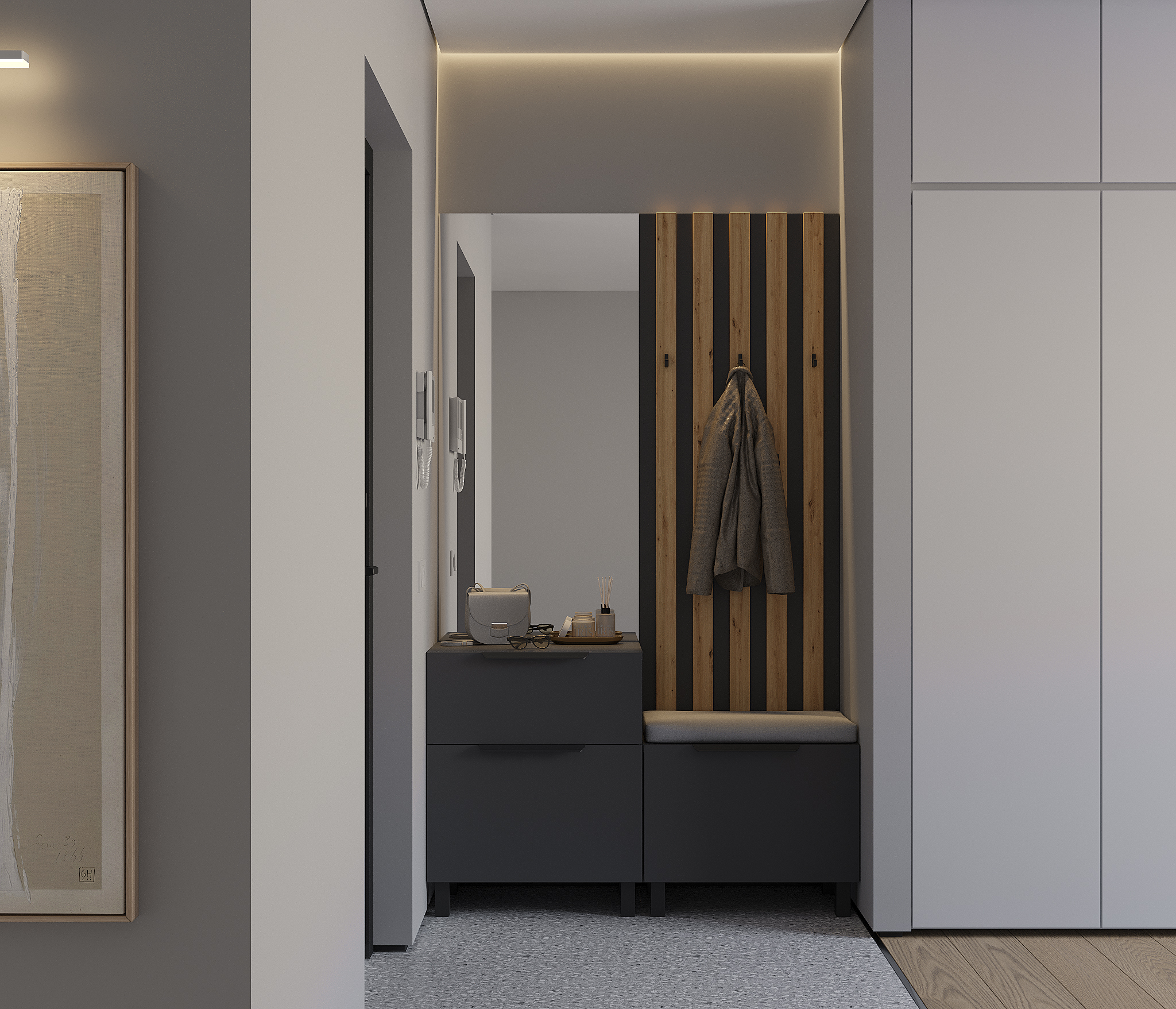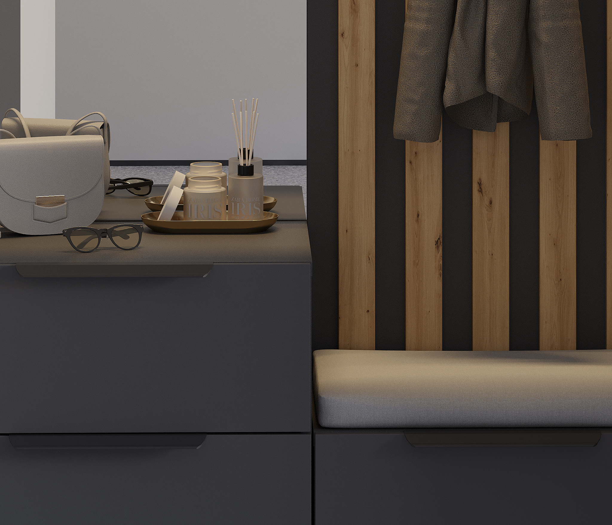 Отзывы о Столплит Прихожая Тренд с рейками Диамант серый