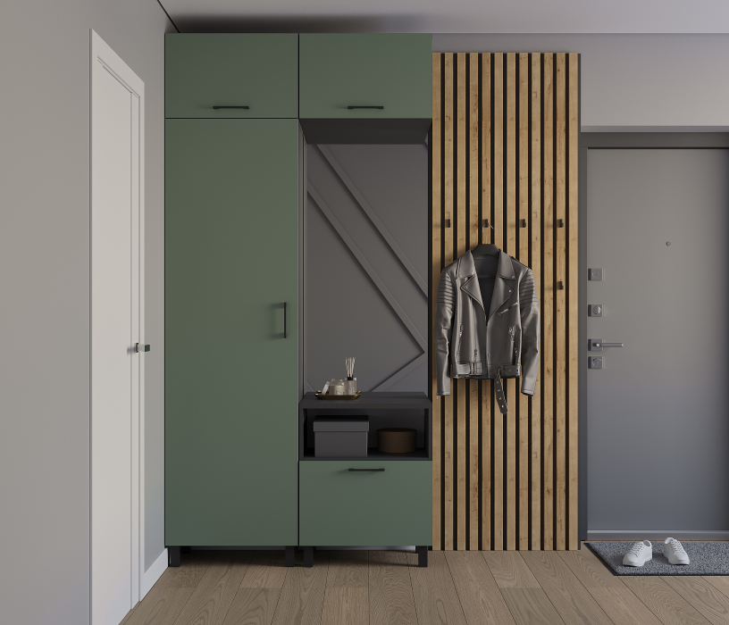 Прихожая Тренд с рейками Диамант серый/Белла Камыш (Камыш)