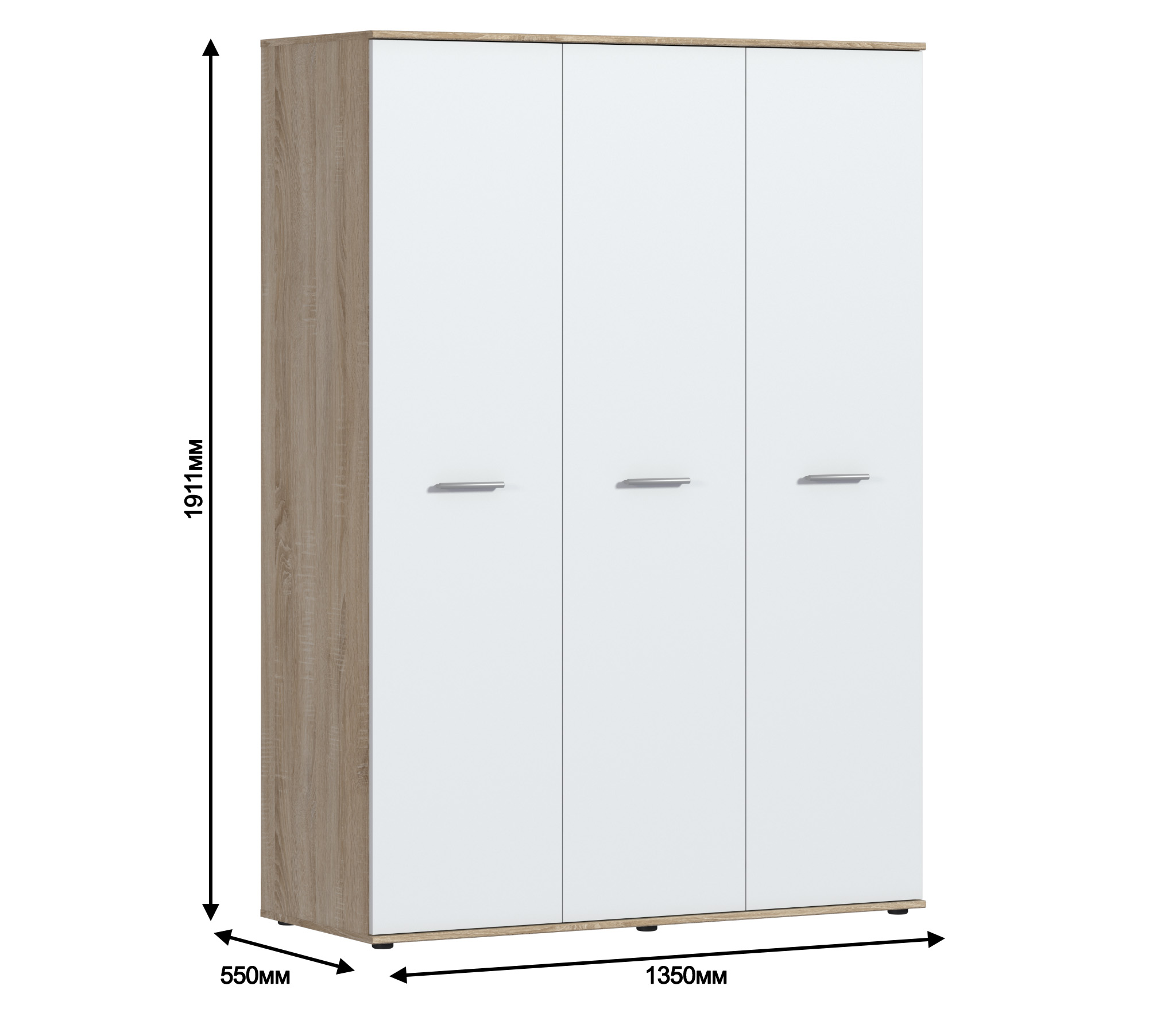 Шкаф 3-х дверный Мамбо СБ-2676 (Дуб Сонома/Белый)