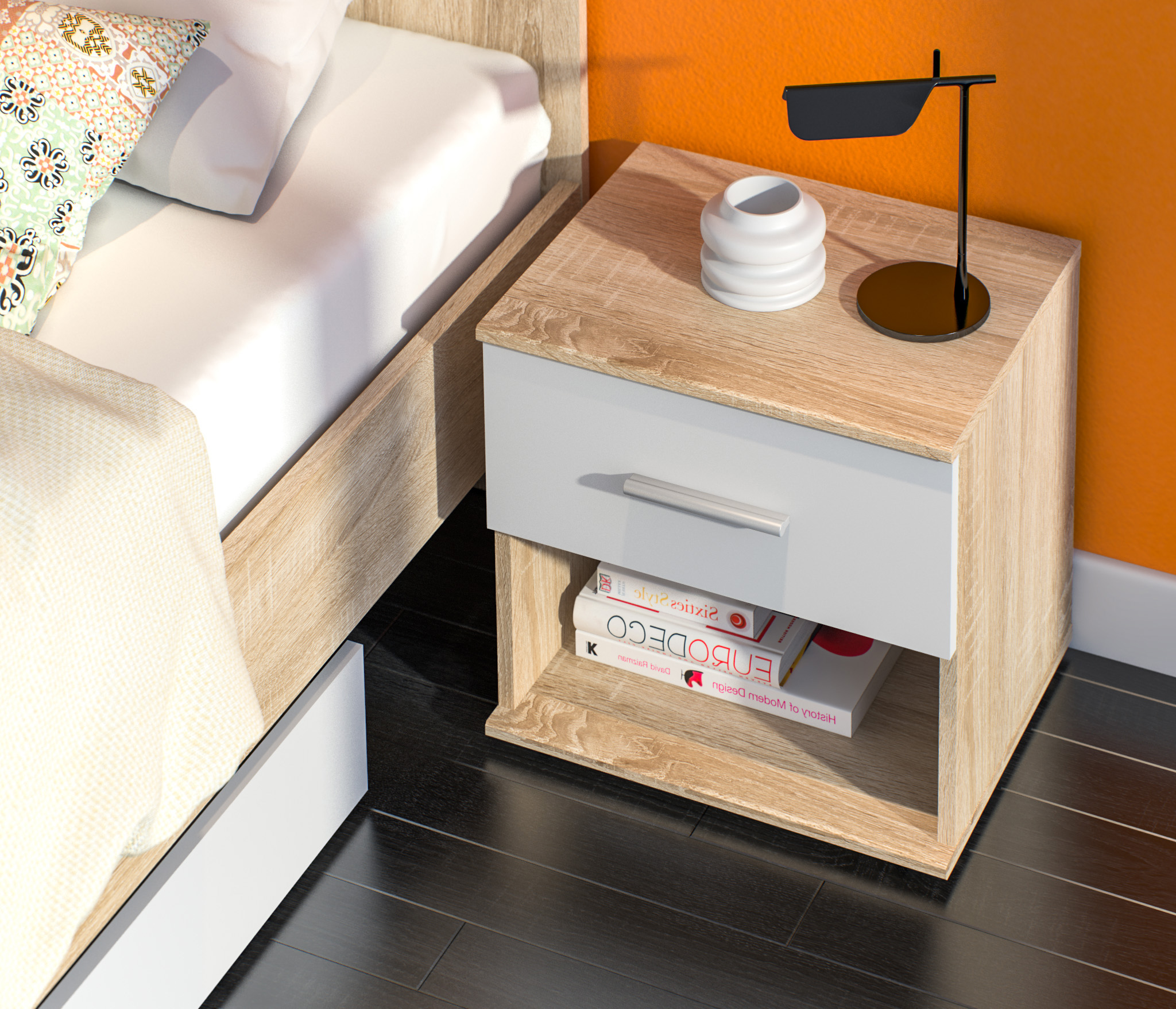 Тумба прикроватная Мамбо СБ-2683 (Дуб Сонома/Белый)