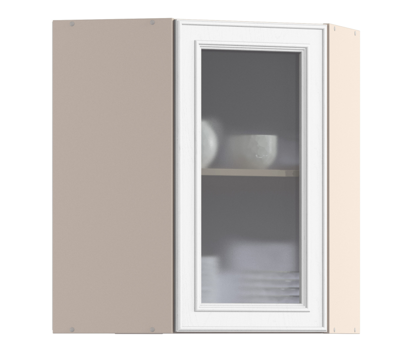 Регина РПУ-60 Полка угловая с фасадом-витриной Песочный/МДФ Классика белый Код 00000294561