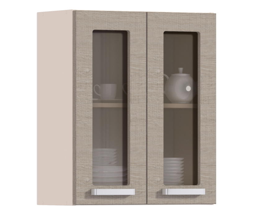 Полка с 2-мя витринами Регина Песочный Дуб Сантана Светлый 600 Код 00000131348