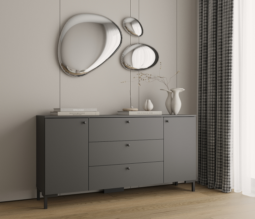 Комод Тренд СБ-3443 3 ящика, 2 двери Диамант серый (ручка-кнопка) (Диамант серый)