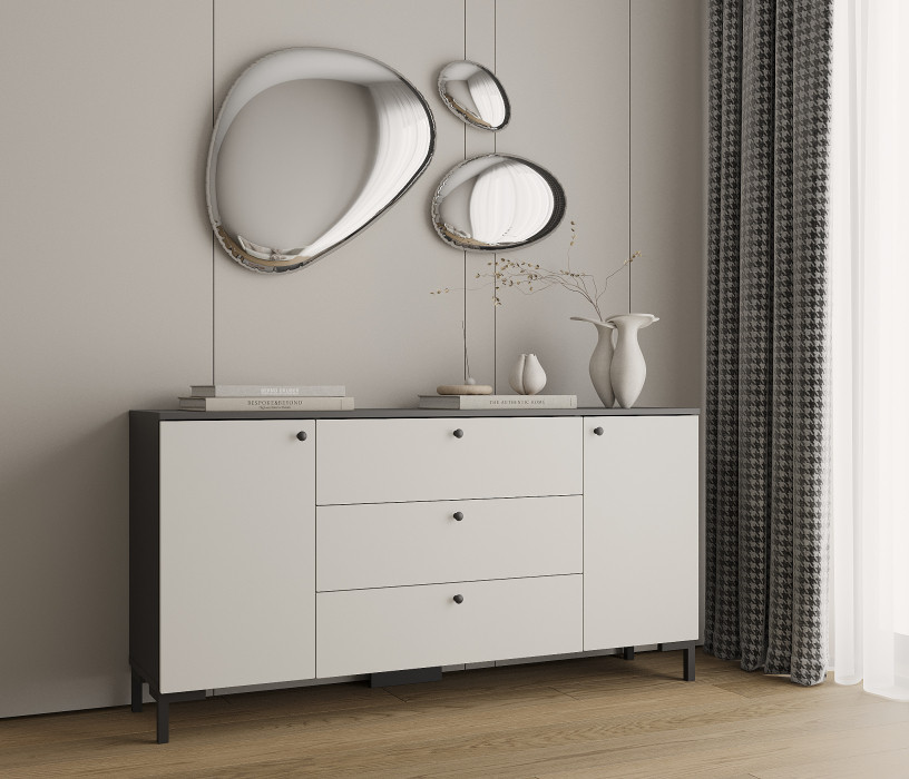 Комод Тренд СБ-3443 3 ящика, 2 двери Диамант серый/Белла Серый Перламутровый (Серый/Светло серый)