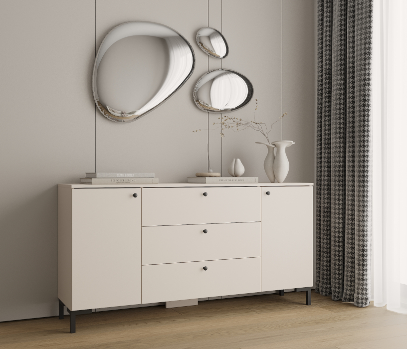 Комод Тренд СБ-3443 3 ящика, 2 двери Кашемир серый/ЛДСП Белла Кашемир серый (Кашемир серый)
