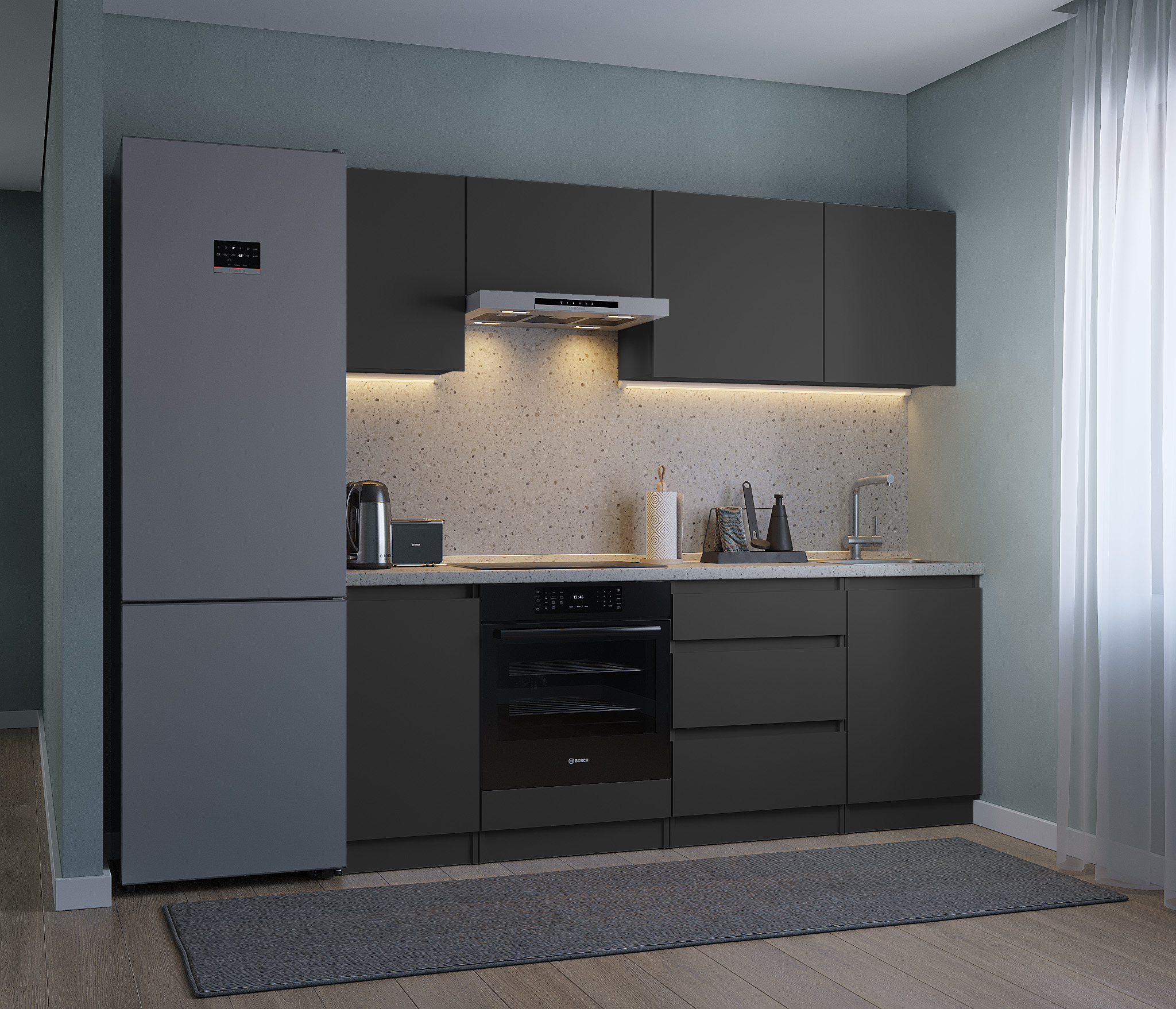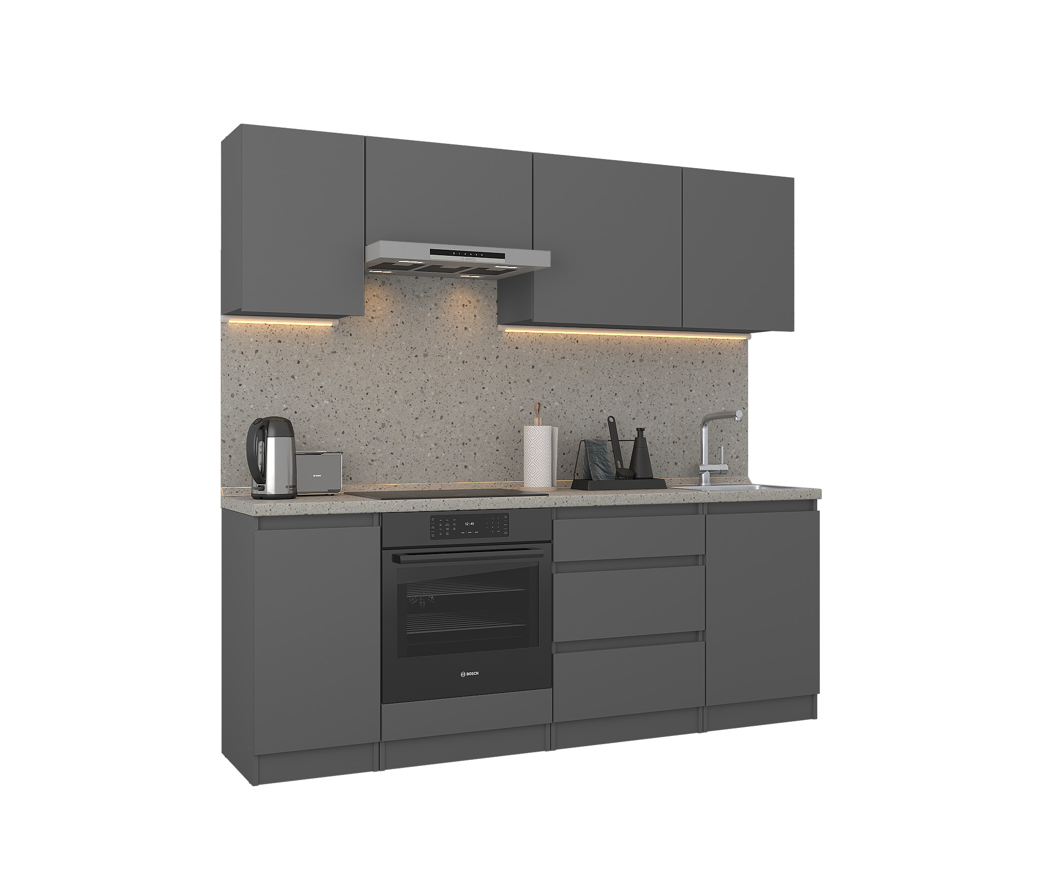 Кухонный гарнитур Леон прямой 210 см, диамант серый (Диамант серый)
