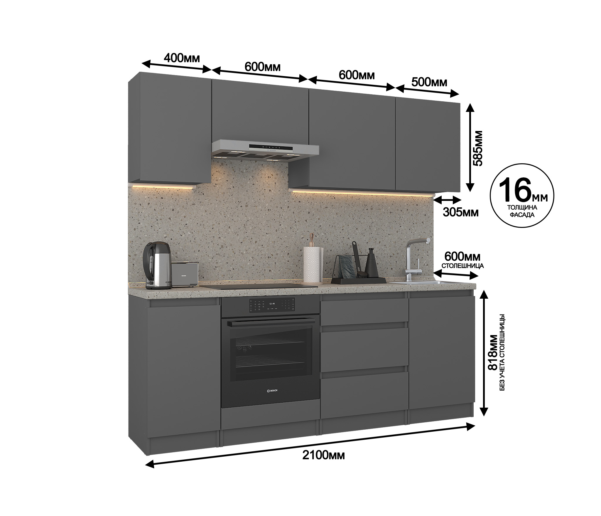 Длина кухни 2,1 метра она идеально подходит для помещений с ограниченным пространством.