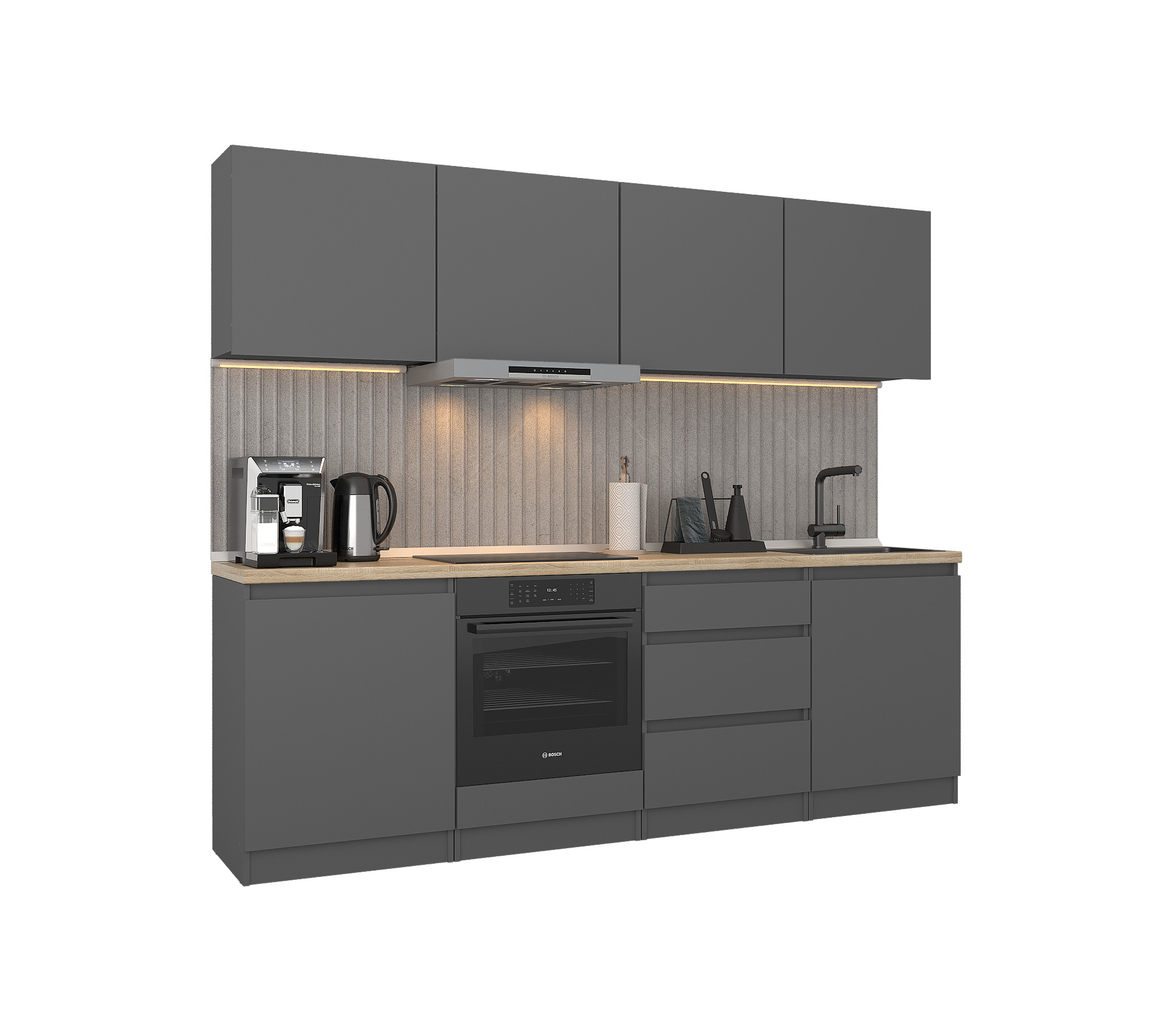 Кухонный гарнитур Леон прямой 240 см, диамант серый (Диамант серый)