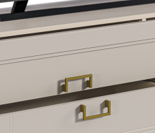 Золотистые ручки и ножки коллекции "Ассоль" добавляют неповторимый шик и изысканность, завершая образ тонким и стильным блеском. Эти акценты создают атмосферу роскоши и утонченности. Они играют роль визуального украшения, дополняя общий вид мебели и придавая ей особый шарм и элегантность.