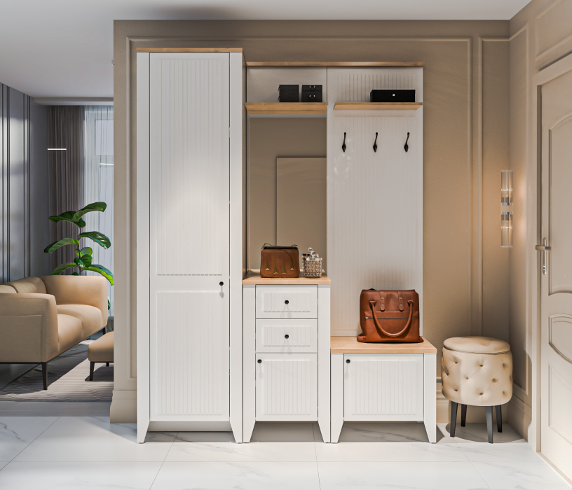 Набор для прихожей Монтана Белый Альпийский,Дуб Гамильтон/МДФ Дуб Белый Код 00000335228