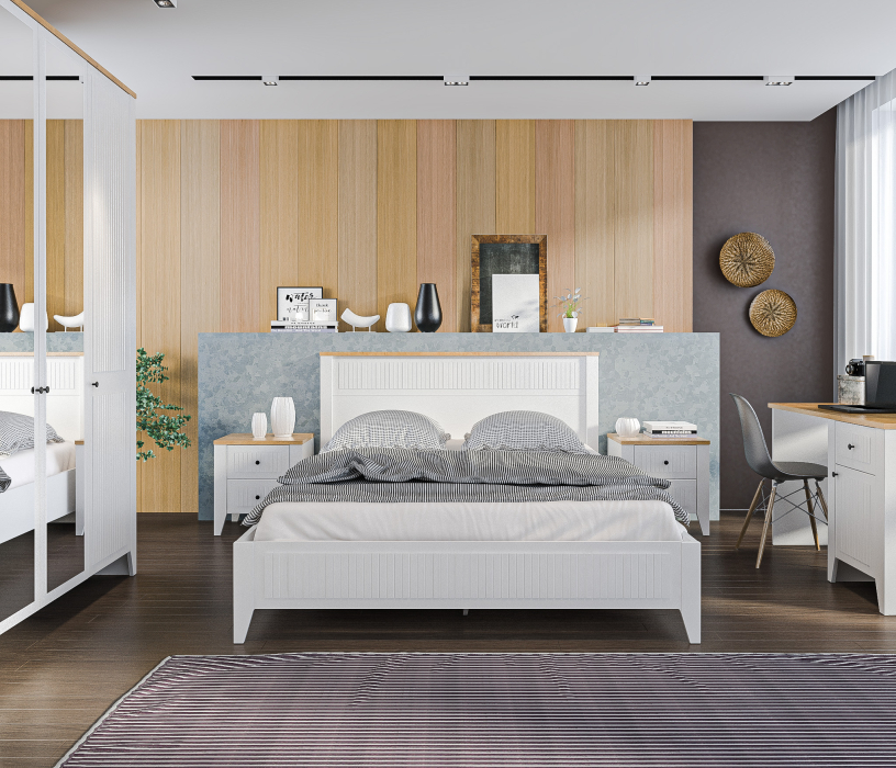 Набор для спальни Монтана Белый Альпийский,Дуб Гамильтон/МДФ Дуб Белый (Белый Альпийский,Дуб Гамильтон,МДФ Дуб Белый)