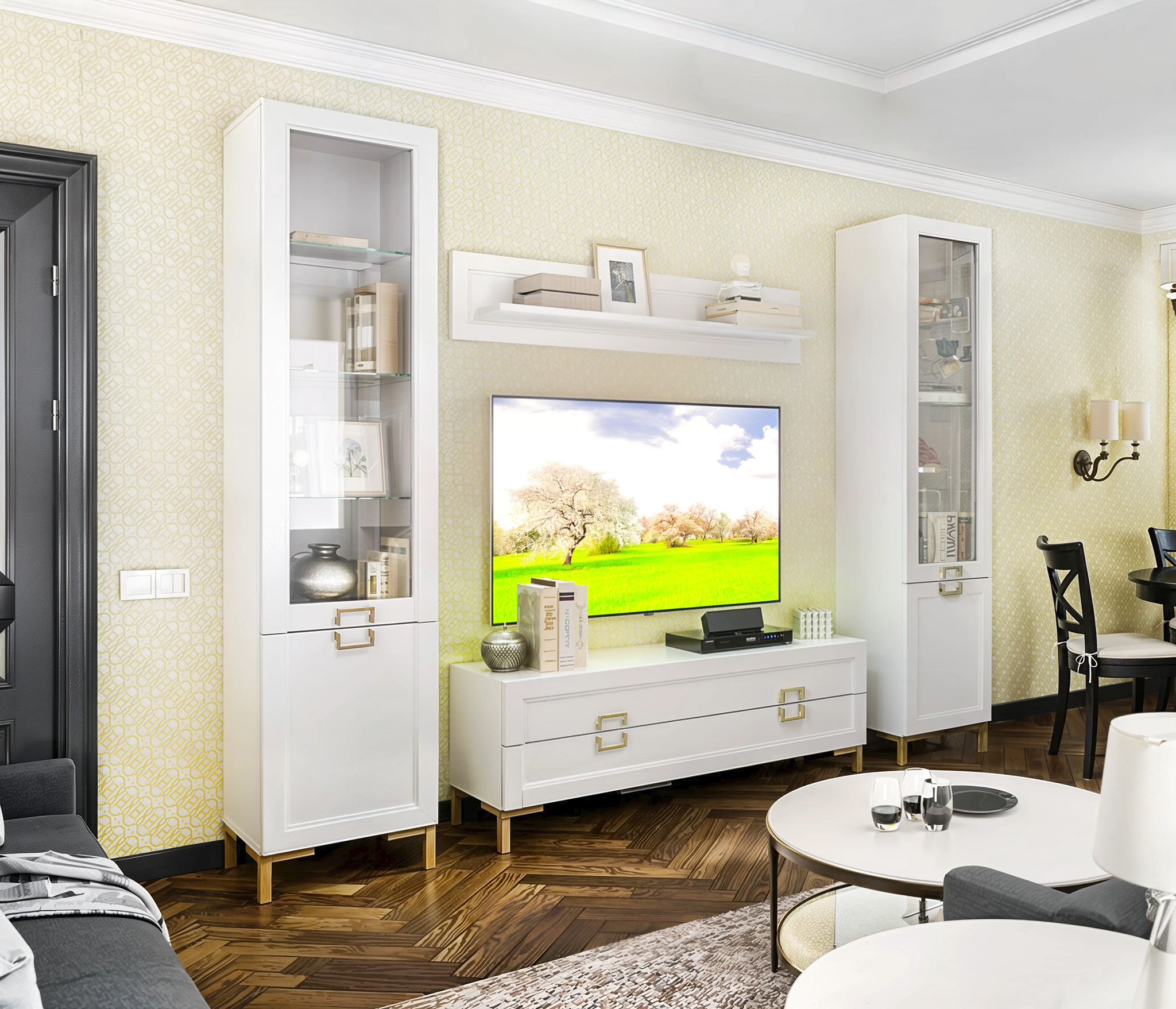 Комплект для гостиной с витринами Ассоль, Белый (Белый)
