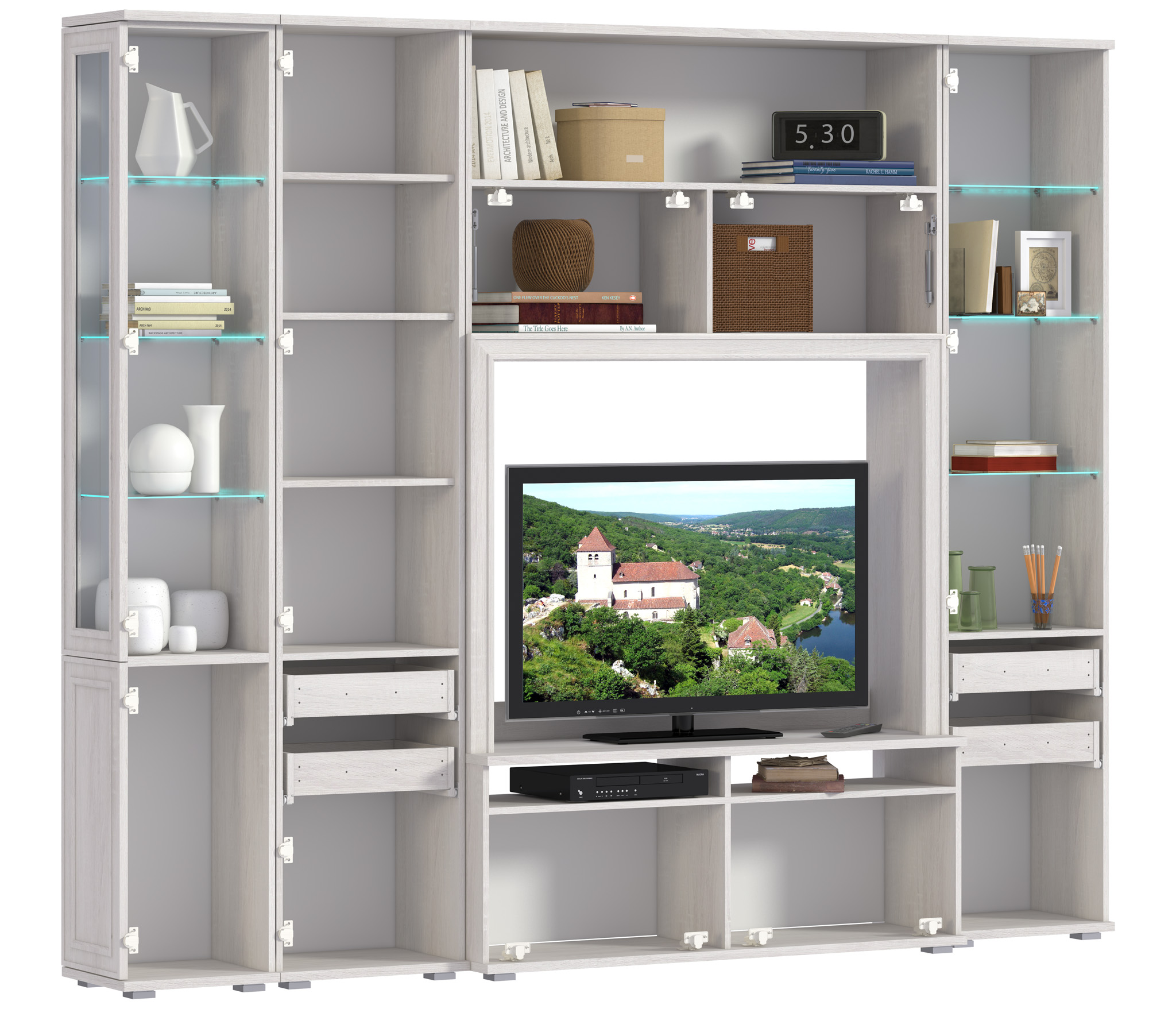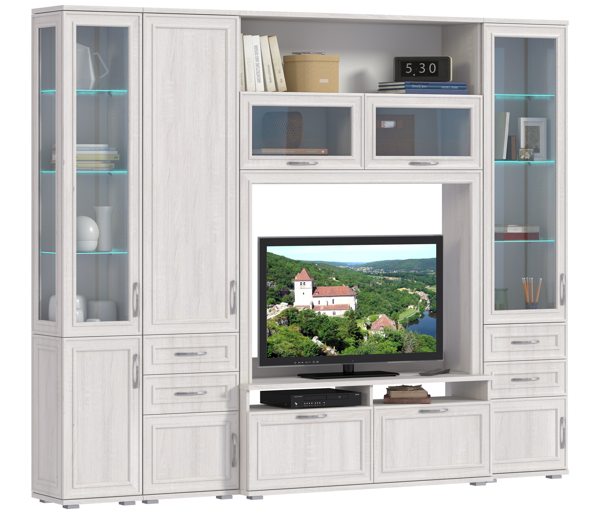 Красивая белая стенка, привлекает своей стильностью, функциональностью и ценой.