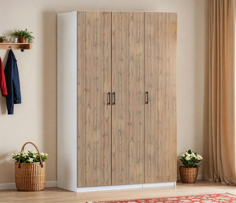 Шкаф трехдверный Макс 1500 мм, вариант №3 (ЛДСП) (Дуб вотан/Белый)