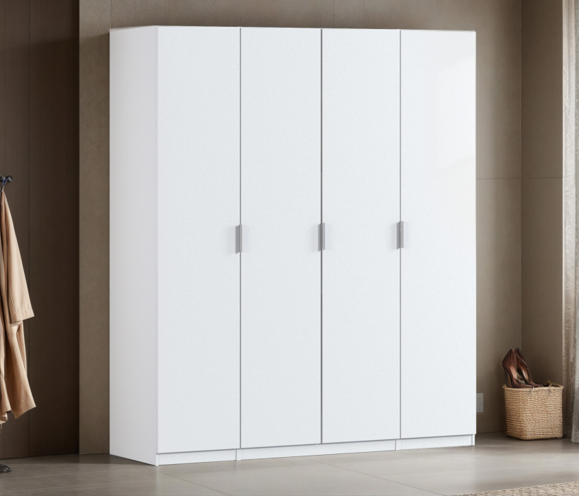 Шкаф четырехдверный Макс 2000 мм, вариант №4 (ЛДСП/МДФ) (Белый)