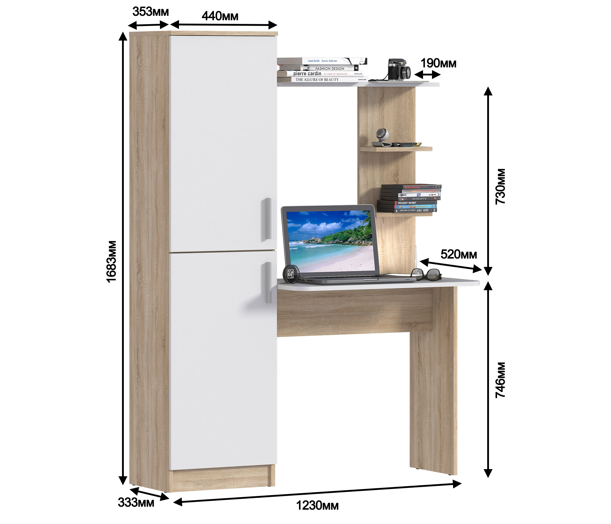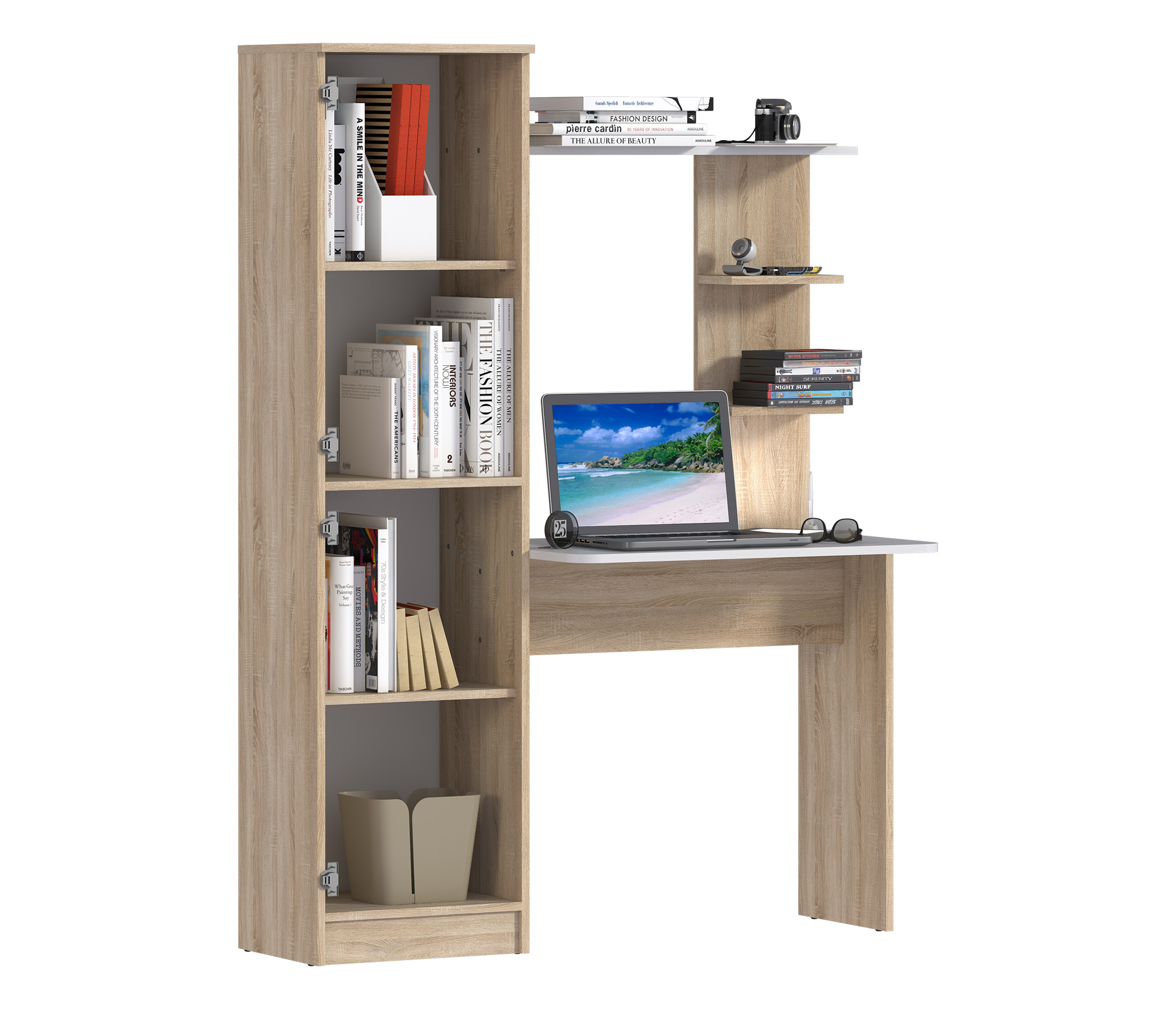 Отзывы о Столплит Стеллаж со столом Тесса СБ-2737 Дуб Сонома/Белый