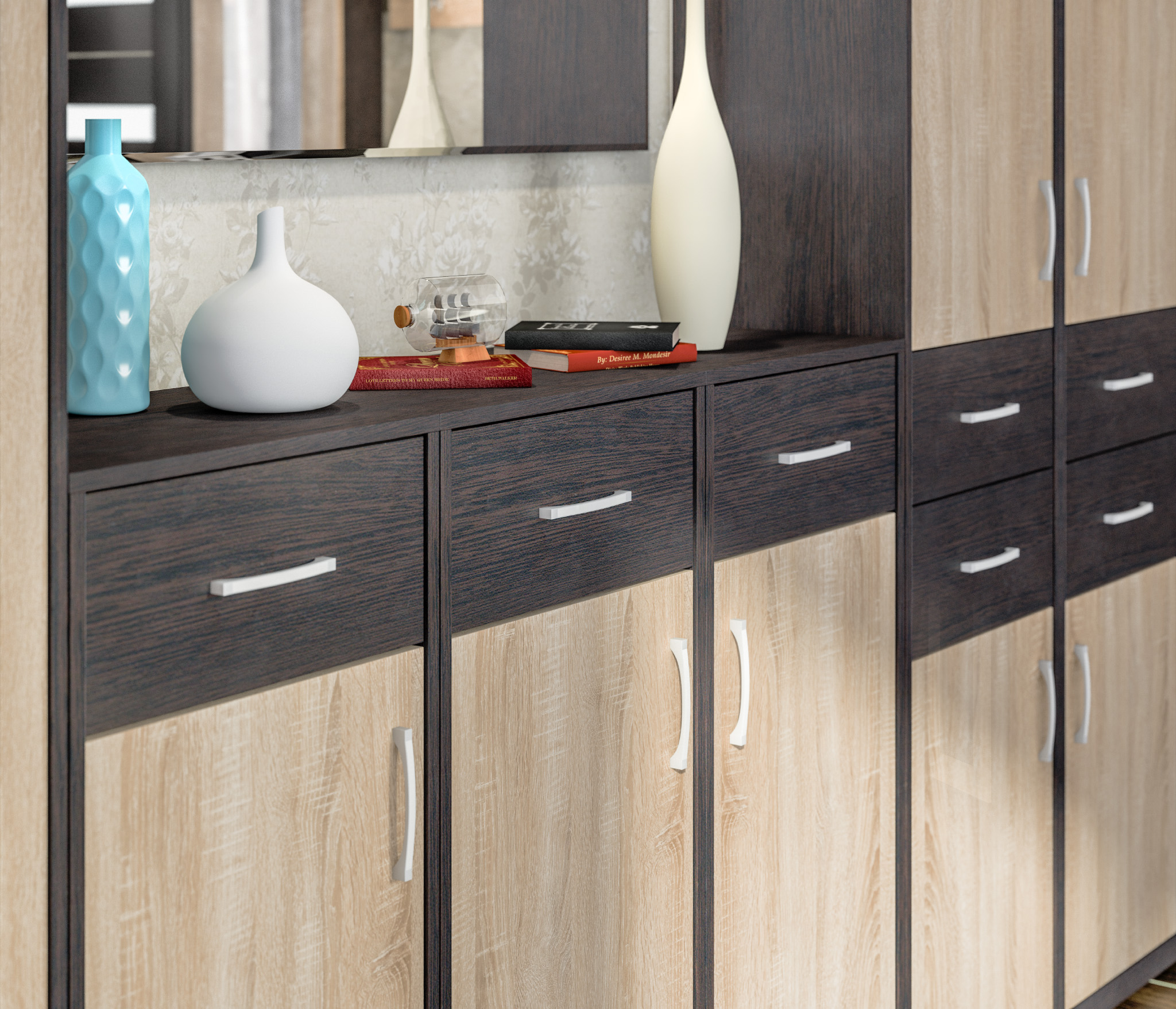 Афина СБ-2232 Шкаф с ящиками Венге/Дуб СономаАфина СБ-2233 Шкаф угловой Венге/Дуб Сонома