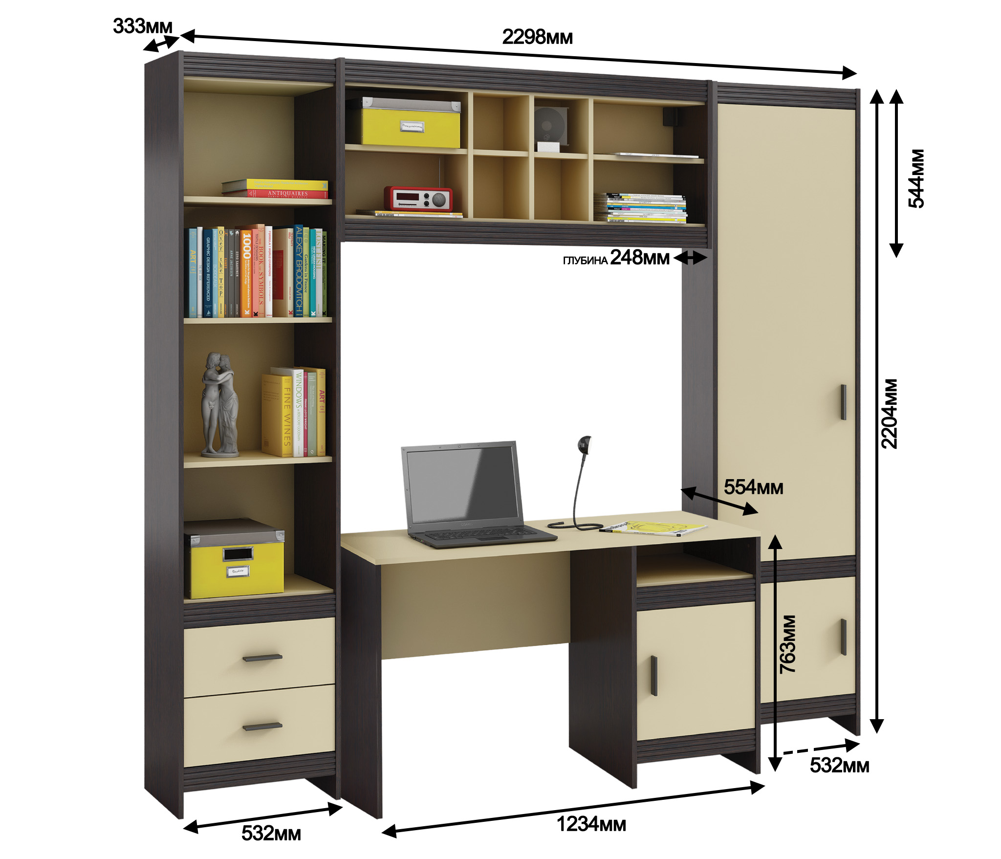 Дакота СБ-1896 Шкаф-пенал Венге/ВанильДакота СБ-1904 Полка Венге/Ваниль