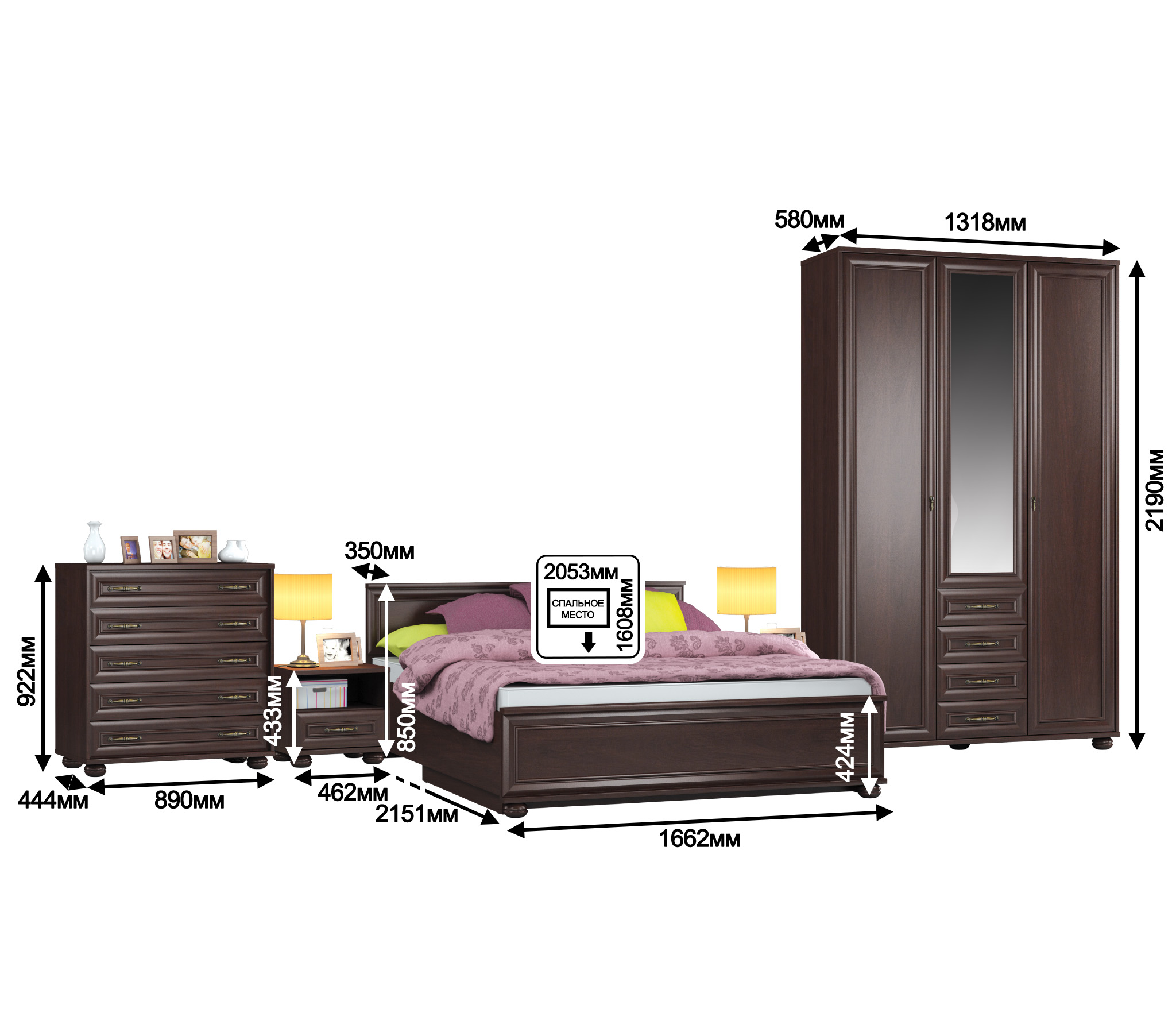 Отзывы о Столплит Верди комплект (шкаф+комод+кровать+тумбы)