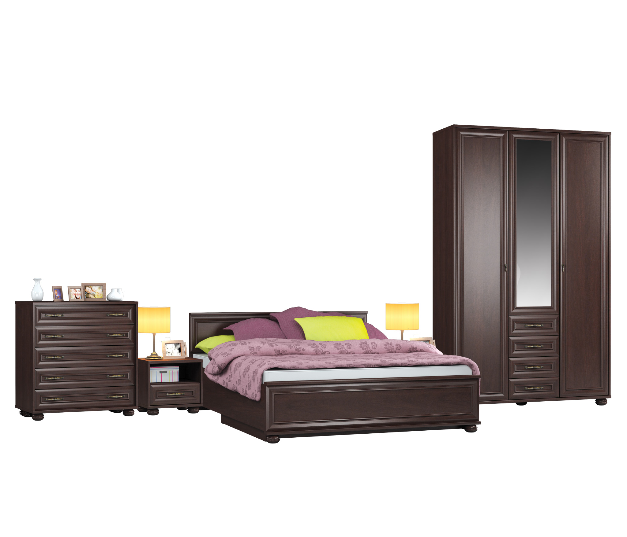 Верди комплект (шкаф+комод+кровать+тумбы) (Махагон)
