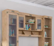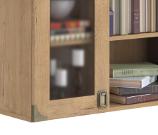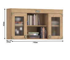 Габаритные размеры – ширина 119 см, высота 62 см и глубина 24 см. Визуально полка делится на три отделения. По центру расположены две открытые полки. По бокам два отделения, оснащенные остеклёнными дверцами.Полка Фрегат СБ-2821 выполнена из прочного современного КДСП. Материал отделки в цвете «Дуб Бунратти» по тактильным ощущениям не отличается от природной древесины.Полка крепится к стене при помощи дюбелей, которые входят в комплект.