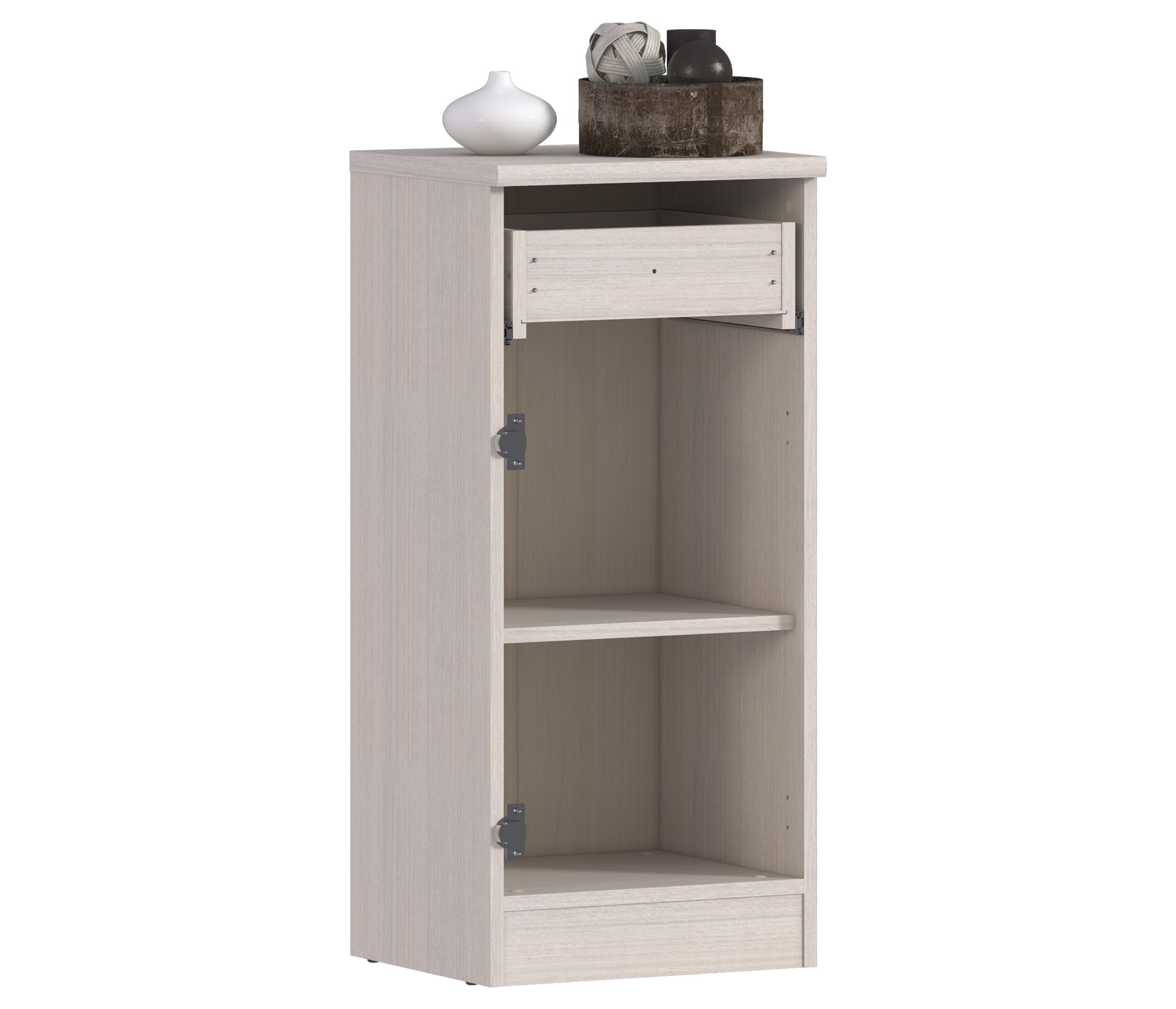 Тумба Грация СБ-2901 – функциональный и практичный предмет мебели, который предназначен для хранения обуви и аксессуаров. Тумба может быть элементом модульной системы Грация, но и может использоваться соло в интерьере спальни, прихожей, кабинета.¶Габаритные размеры – ширина 40 см, высота 88 см и глубина 35 см. Под столешницей расположен ящик с выдвижным механизмом и отделение с двумя вместительными полками с отдельной дверцей.