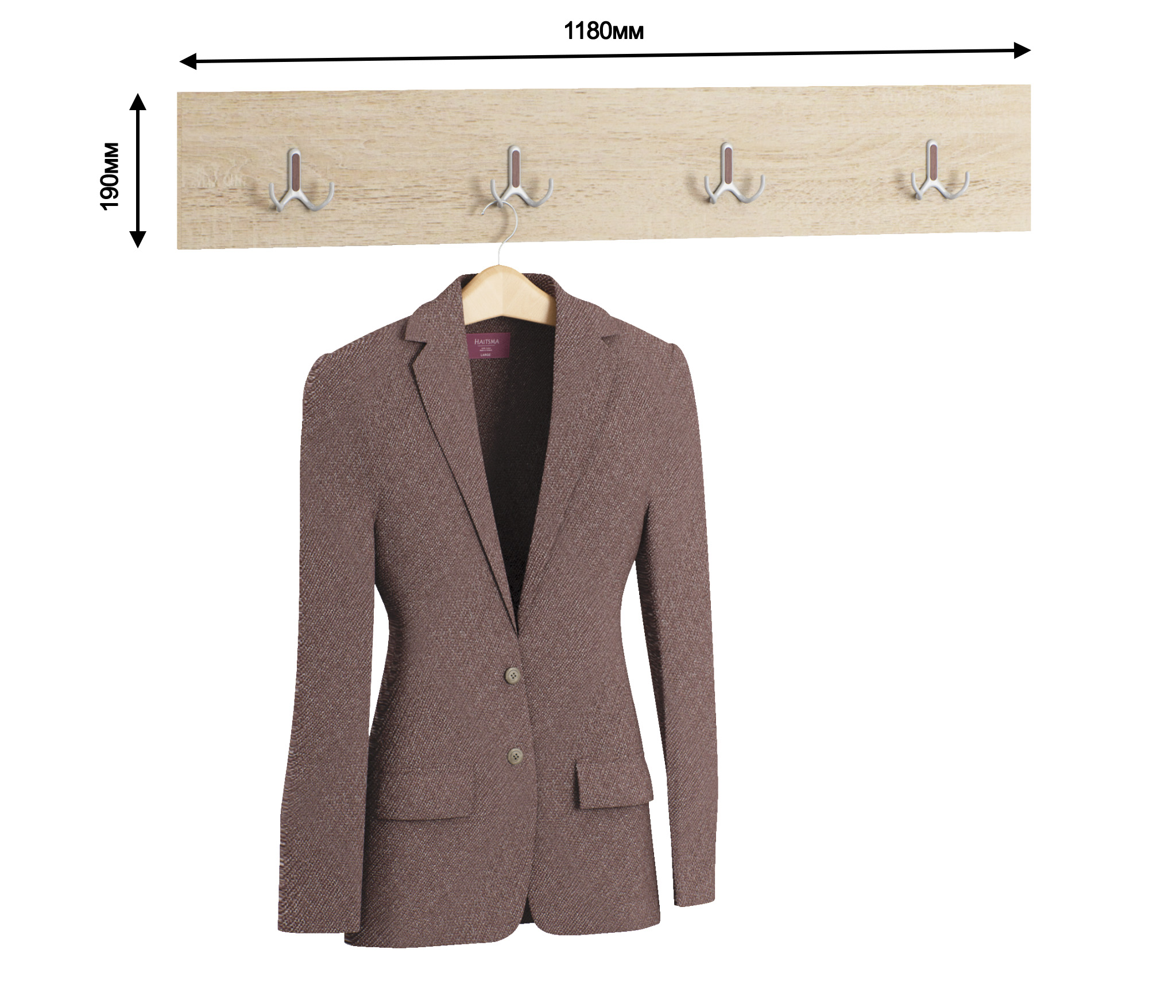 Коридор у нас очень длинный и узкий. Повесили такую вешалку без всяких шкафов вдоль всей стены от двери и до конца коридора. И внизу лавку установили. Получилось море места и компактно. Хорошие крючки по качеству.