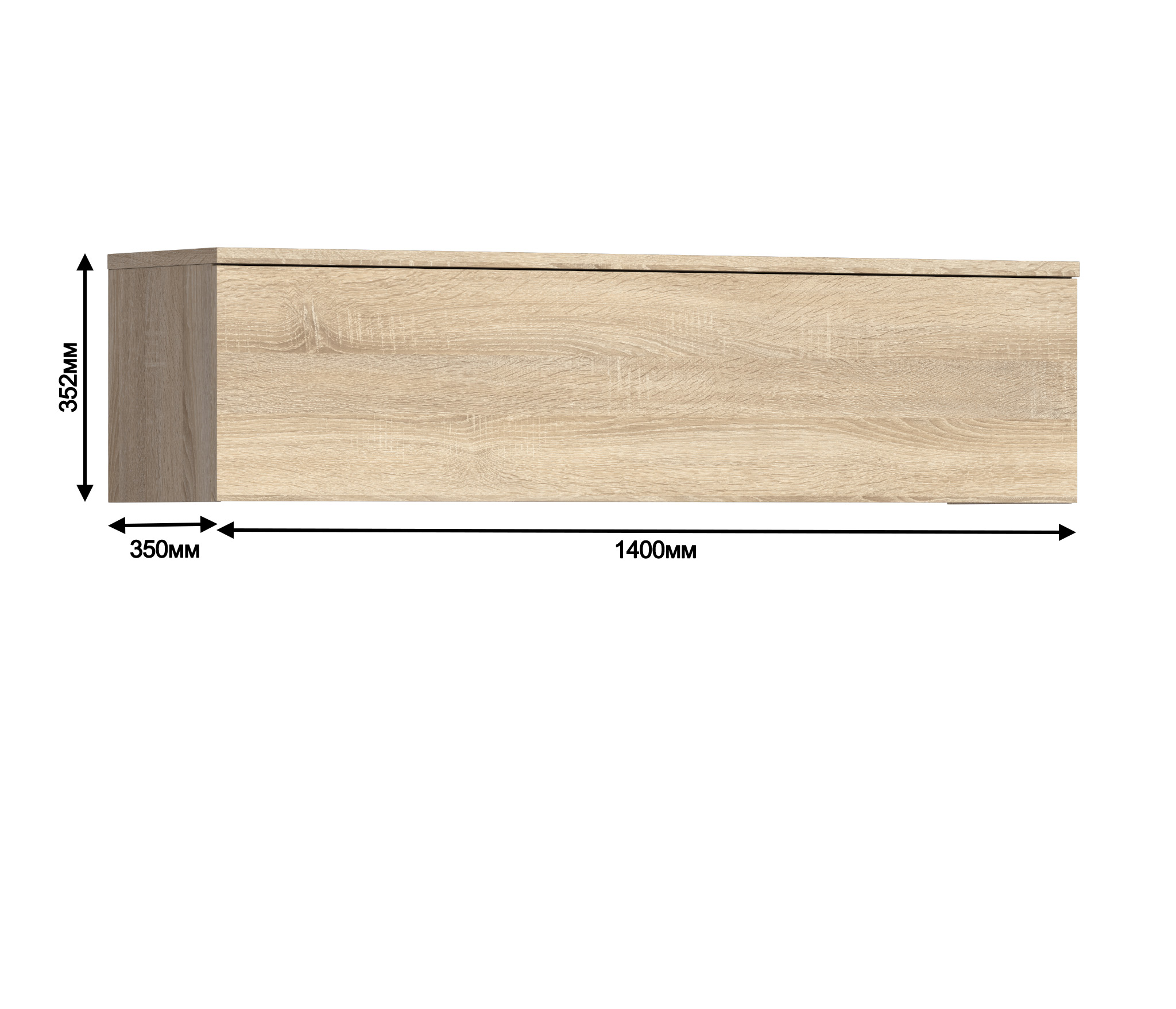 Габаритные размеры – ширина 140 см, высота 35 см и глубина 35 см. Внутри, за открывающейся снизу-вверх дверцей, расположены два вместительных отделения.