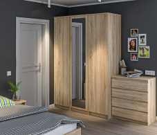 Взяли из Весты 2 пенала, комод, полку со стеклом и 2 шкафа - однодверный для мужа и двухдверный для меня: вместительные и нам очень подошел цвет - всё поместилось, а шкафы не выделяются. Отсутствие ручек при наличии маленького ребенка только плюс.