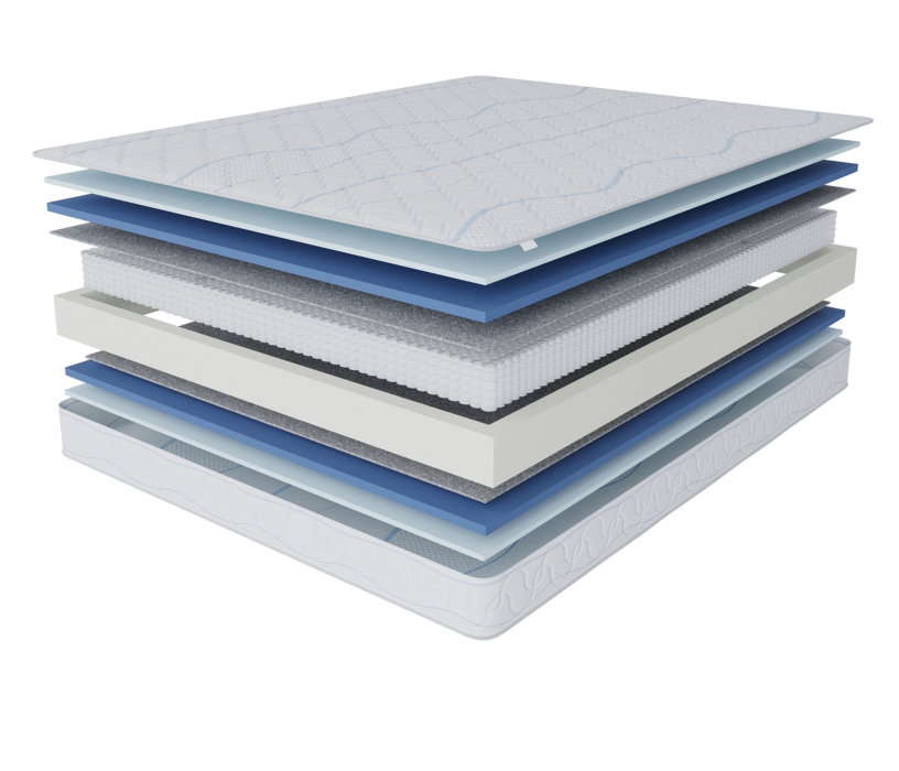 В основе матраса лежит блок независимых пружин (мультипакет) 500 пр/м2, благодаря такой плотности пружин, матрас может повторять контуры спящего с максимальной точностью и при этом выдерживать довольно высокие нагрузки. Термовойлок защищает комфортные слои от истирания и соприкосновения с пружинами. В качестве комфортного слоя используется самая жесткая и прочная пена из существующих - (HL4065) толщиной 3 см.