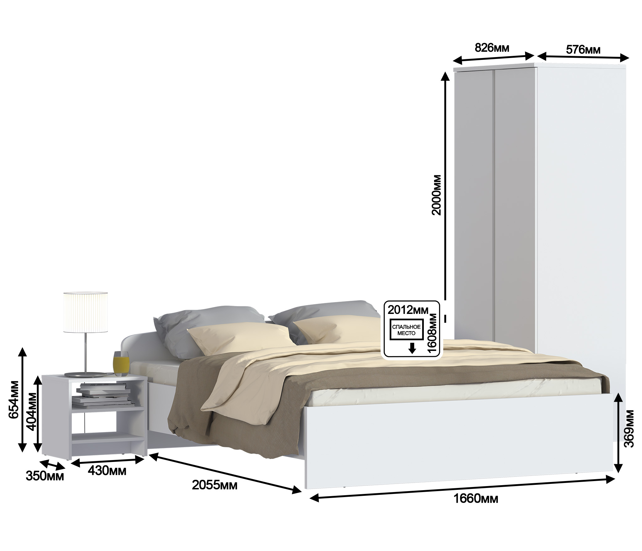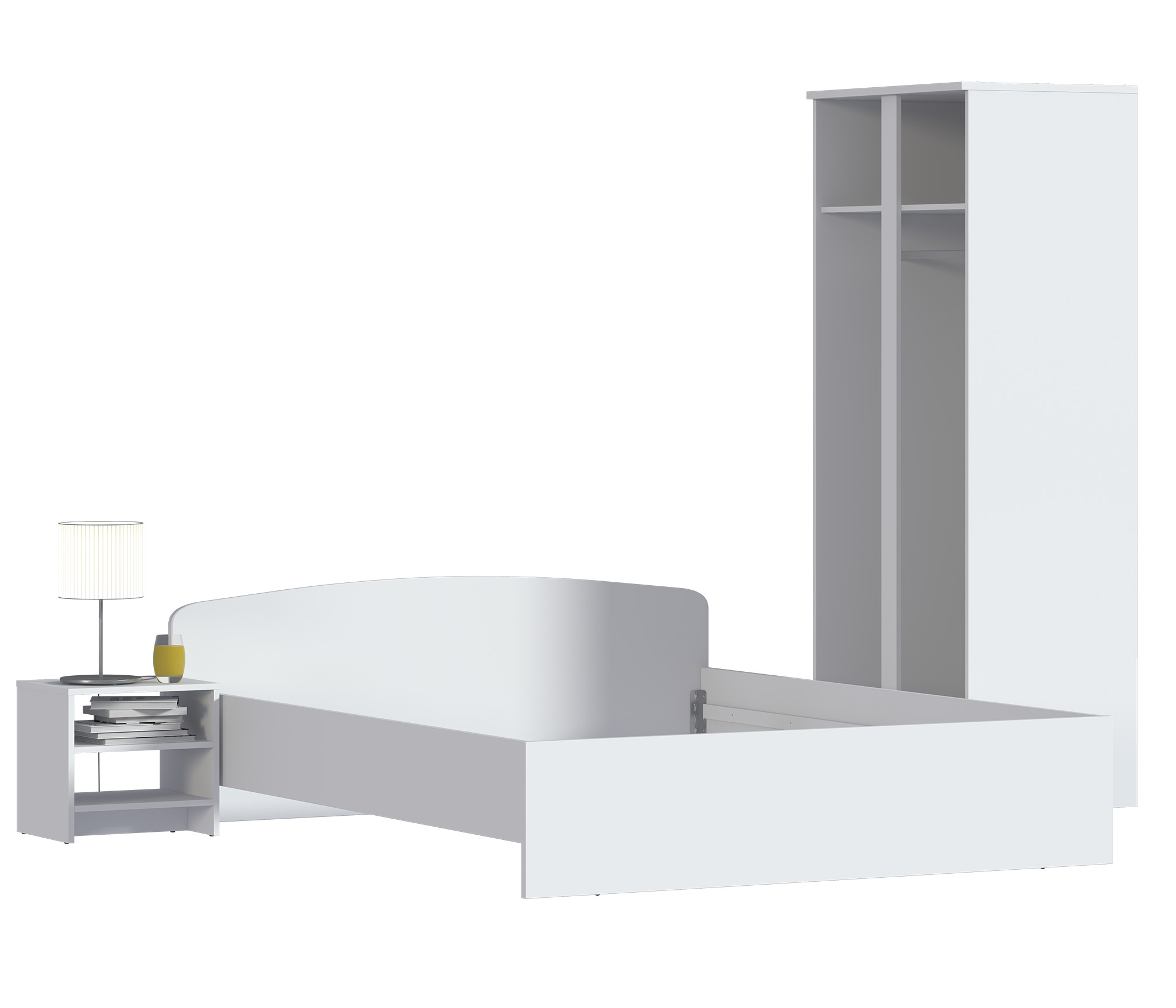 Кито набор (кровать+шкаф+тумба) Белый Код 00000246887