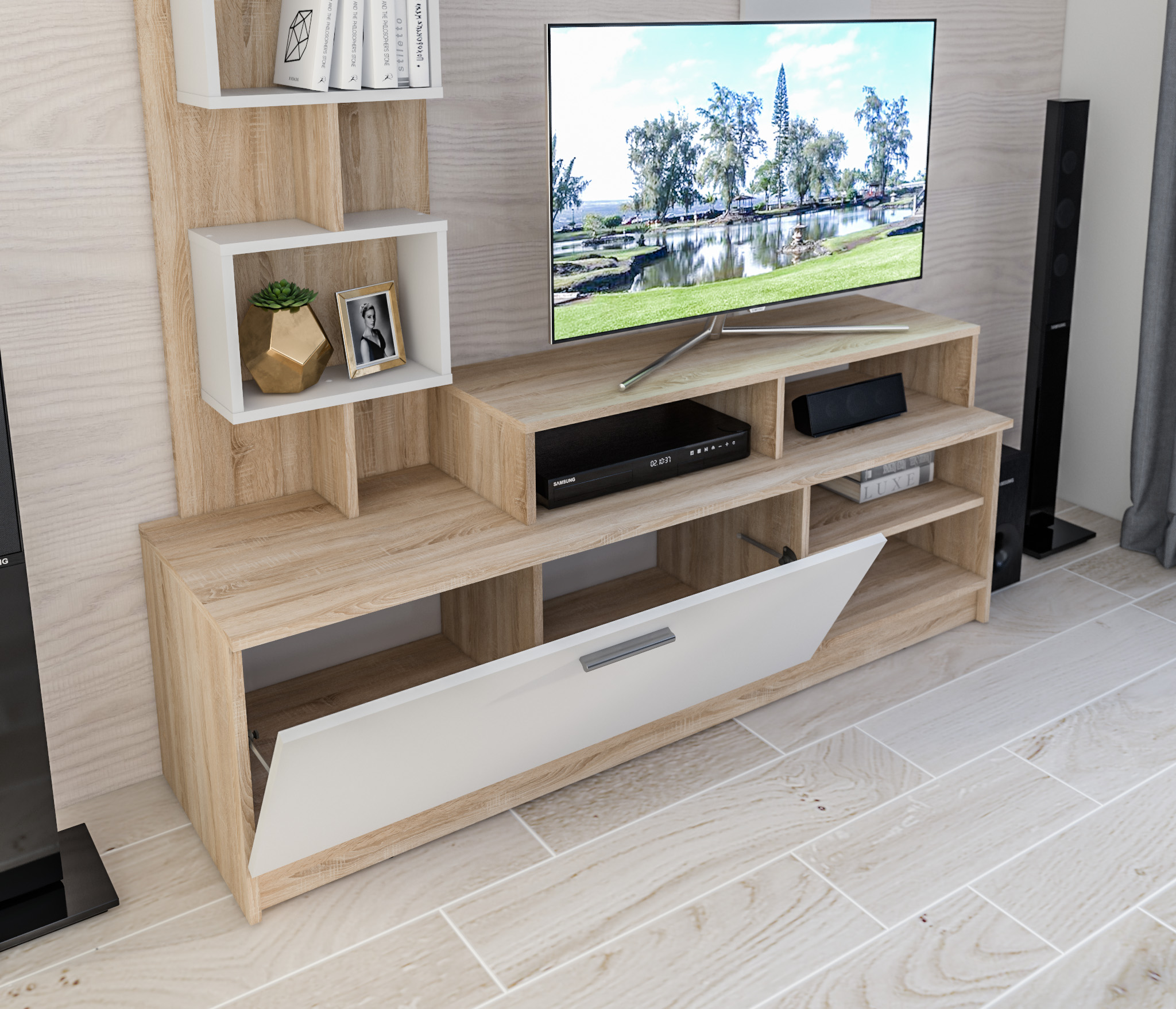 Есть полочка для приставочки и коты быстро определили место для себя! Очень красиво и удобно, а также в разы дешевле, чем кошачий домик)) Быстро доставили и собрали. Сборщик мастер своего дела, и беседа хорошая и быстро, практически не глядя все сделал.