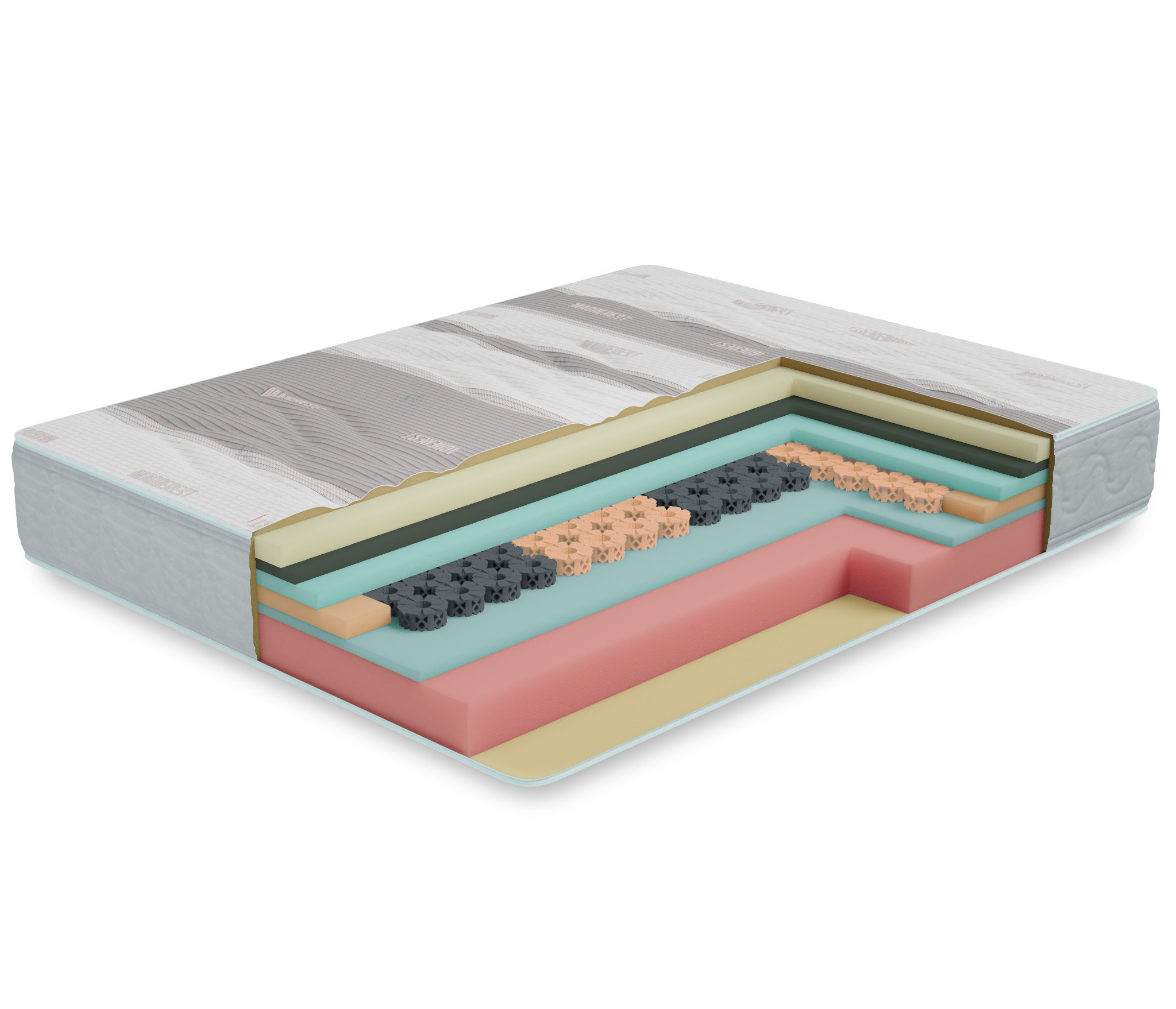 Завершает этот блок очень жесткая и прочная пена, которая выполняет функцию платформы и равномерно распределят нагрузку по всей площади матраса.