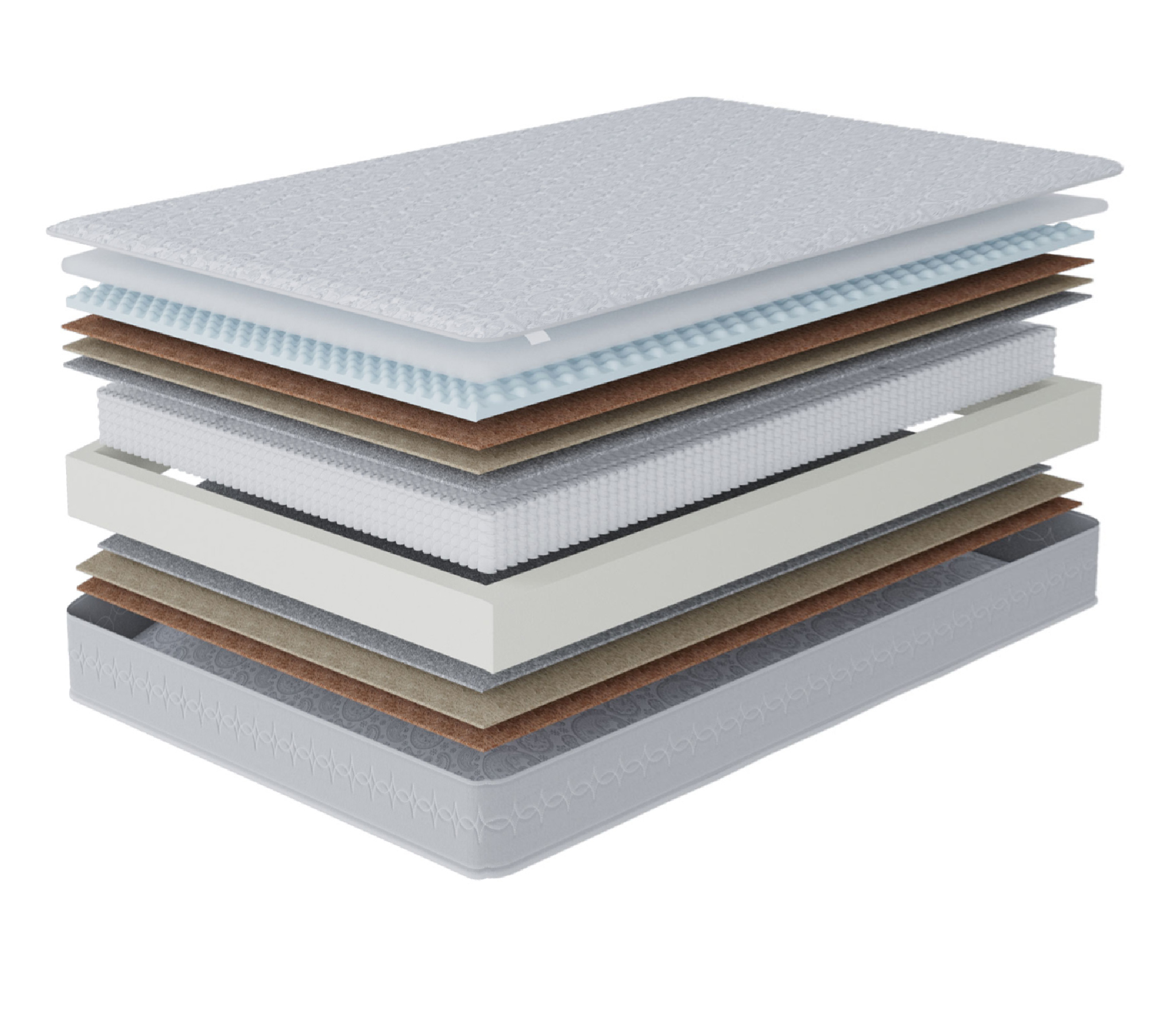 Многослойный матрас, подходящий для пар с разным весом. Многообразие слоев и разность их жесткости обеспечит комфортный сон почти любому. Вязкоэластиный ППУ создает ощущения близкие к материалам с памятью формы, но при этом не увеличивает стоимости самого матраса. Пена с эффектом микромассажа обеспечит полное расслабление после тяжелого дня. В этом матрасе использованы латексированные плиты кокосного волокна и сизаля, имеющие в совокопности толщину 20 мм и 30 мм (разные стороны) обеспечат правильную поддержку позвоночнику и при этом защитят матрас от продавлевания. Этот матрас- гарантия хорошего и здорового сна, что в свою очередь пойдет на пользу суставам и опорнодвигательному аппарату, а в случае уже имеющихся проблем, он поможет замедлить их развитие. Рекомендовано использование вместе с защитным чехлом Аквастоп