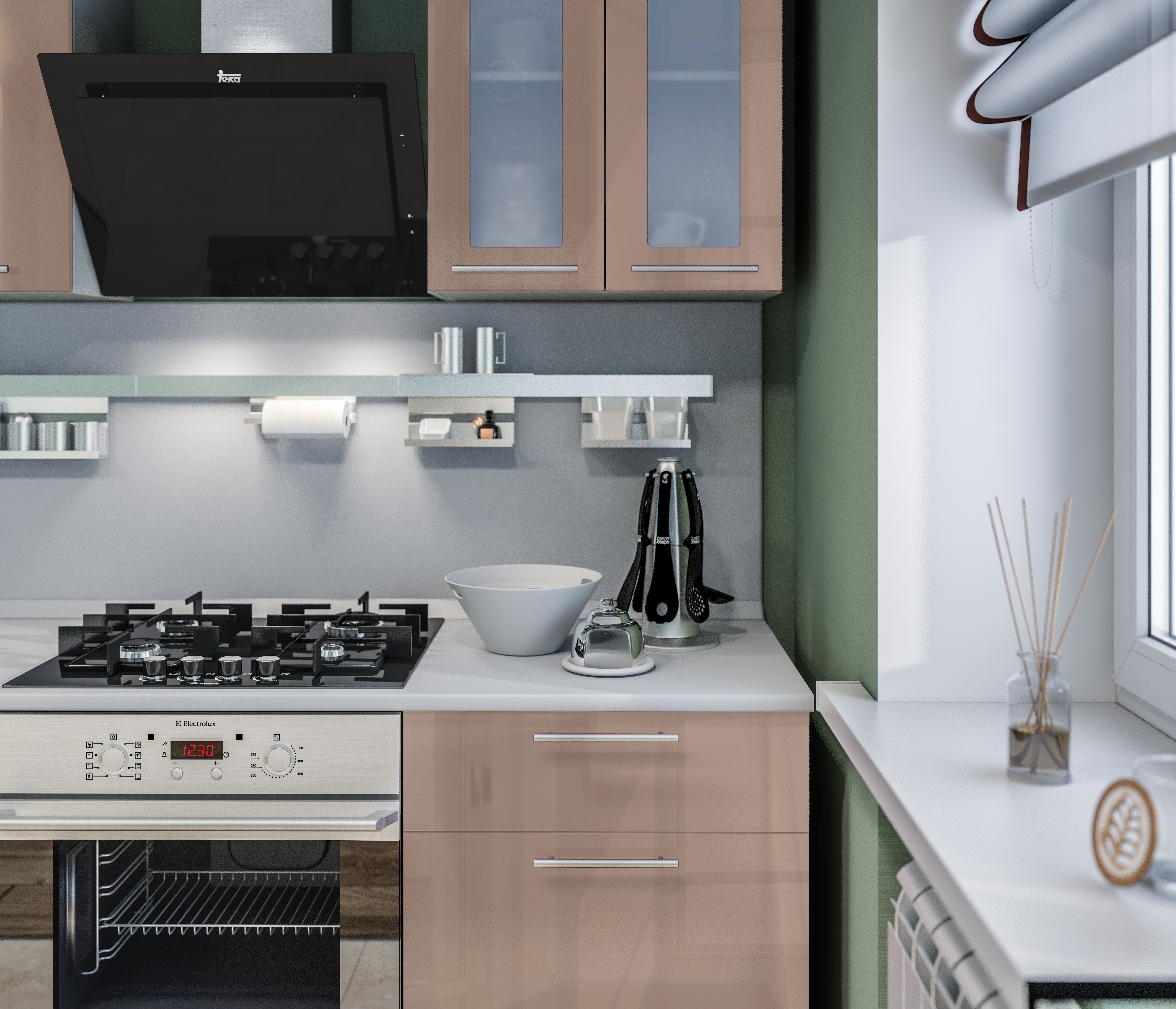 Сама мебель удобная, глубокая. Выбирала модули сама, кухня угловая. В углу дверцы друг об друга бьются, не продумано. Сразу не заметишь. Приходится быть осторожнее.