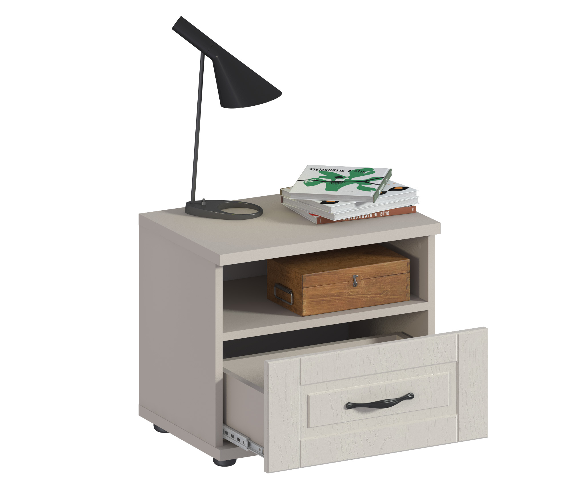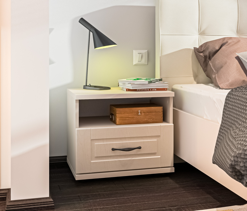 Прикроватная тумба Сити СБ-2946 может использоваться как соло в прихожей, кабинете или детской, так и быть составной частью спального гарнитура Сити.¶Габаритные размеры – ширина 50 см, высота 43 см и глубина 35 см. Под столешницей расположены вместительная полка и выдвижной ящик.¶Выполнена тумба Сити из прочного КДСП, фасад - из МДФ. Отделка комбинированная – корпус в цвете «Бежевый песок», а фасадная поверхность в цвете «Кофе».Тумба оснащена крепкими выдвижными механизмами и протекторами, которые не позволяют повредить пол.