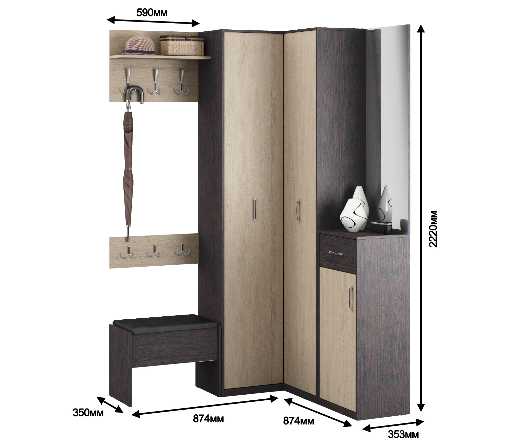 Афина набор с шкафом угловым (Венге/Дуб Сонома)