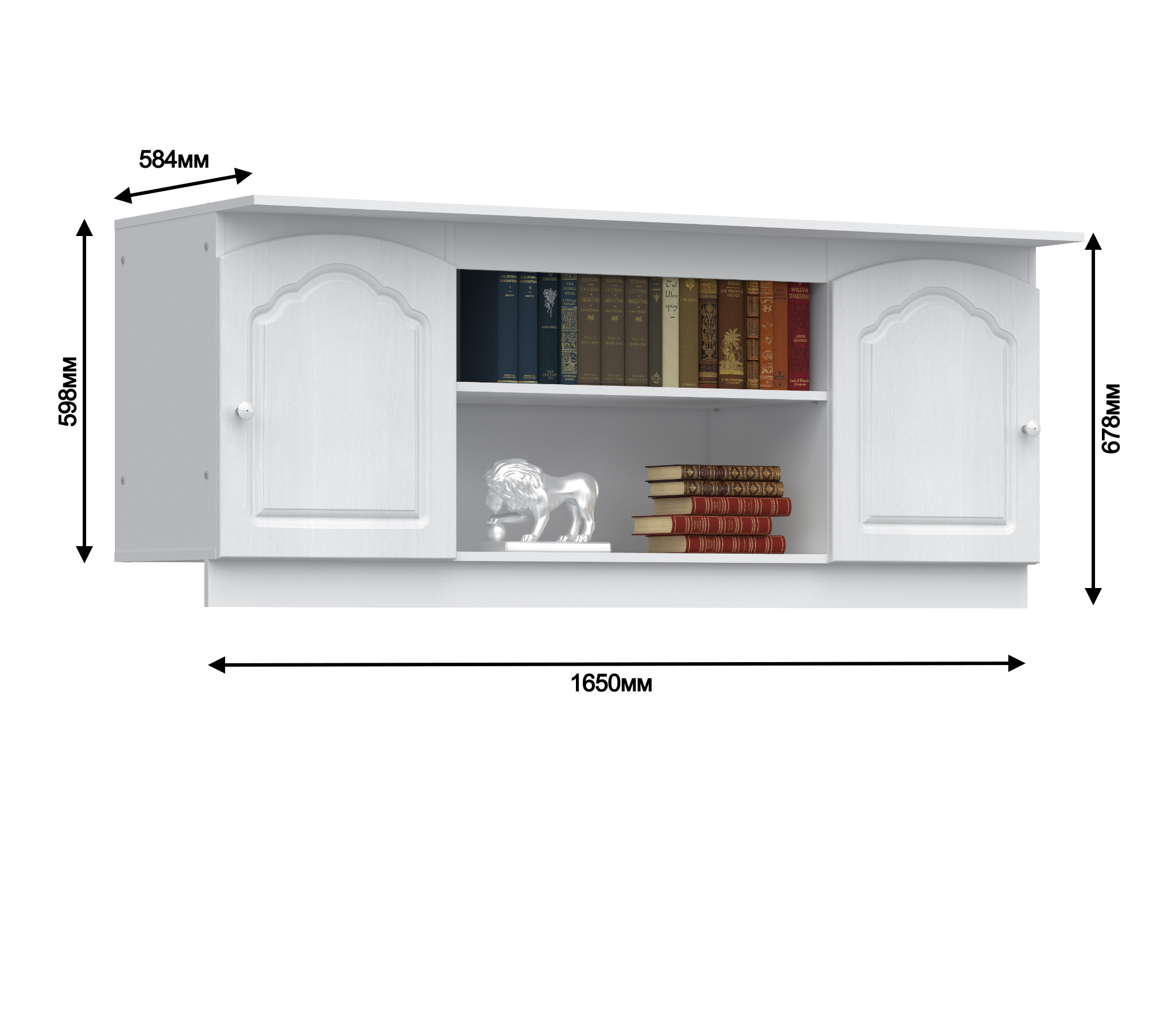 Габаритные размеры – ширина 165 см, высота 67 см и глубина 58 см, далеки от компактных. Это вместительное место хранения. Полка Амалия имеет по центру несколько открытых отделений и два отделения по бокам за отдельными дверцами.