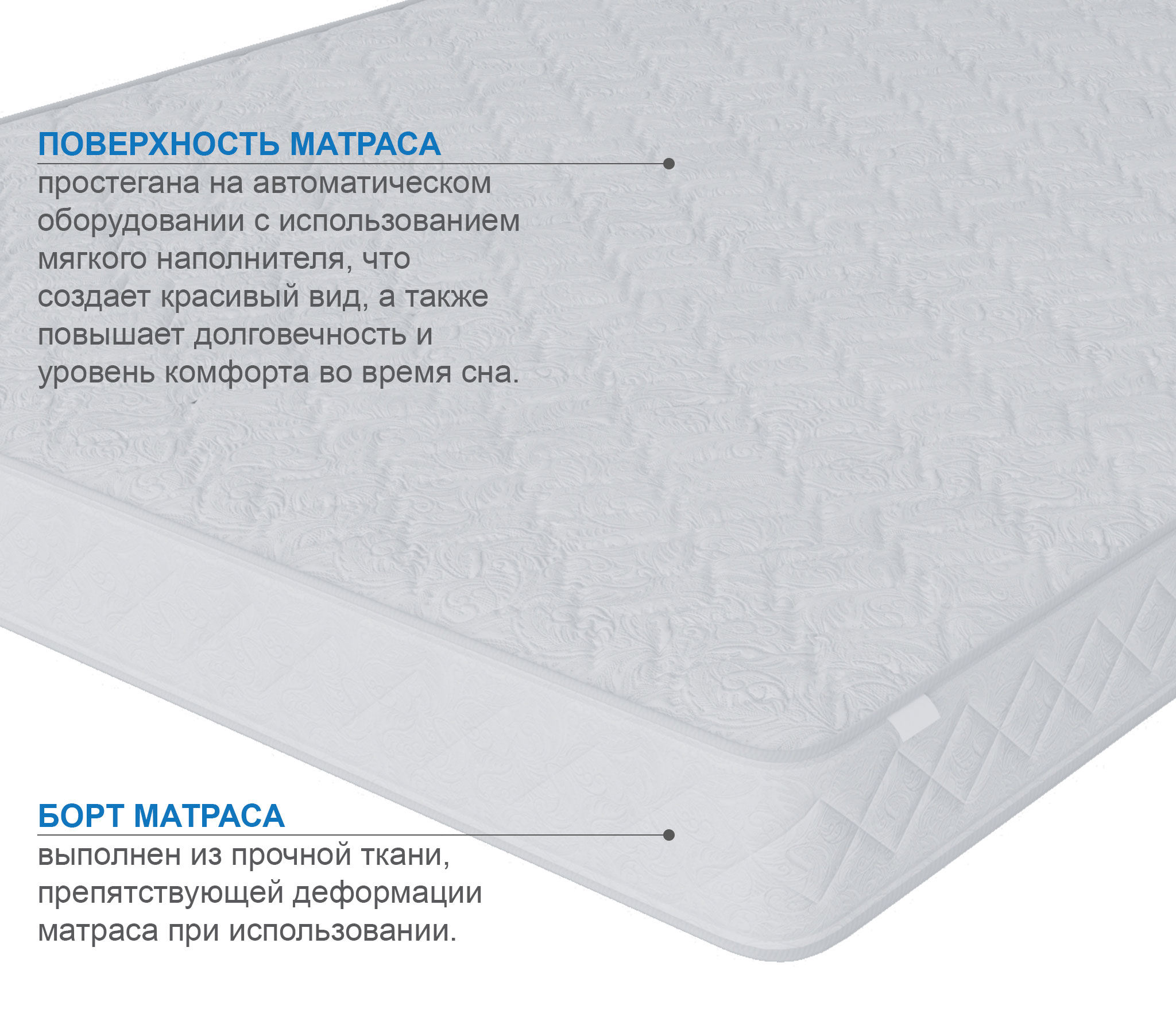 Матрас является двусторонними, при этом обладает одинаковым уровнем жесткости. Матрас Бари позволит расслабиться после тяжелого дня. Чехол матраса изготовлен из трикотажа высокой плотности. Весь периметр матраса также защищен этим чехлом, что повышает его износостойкость.