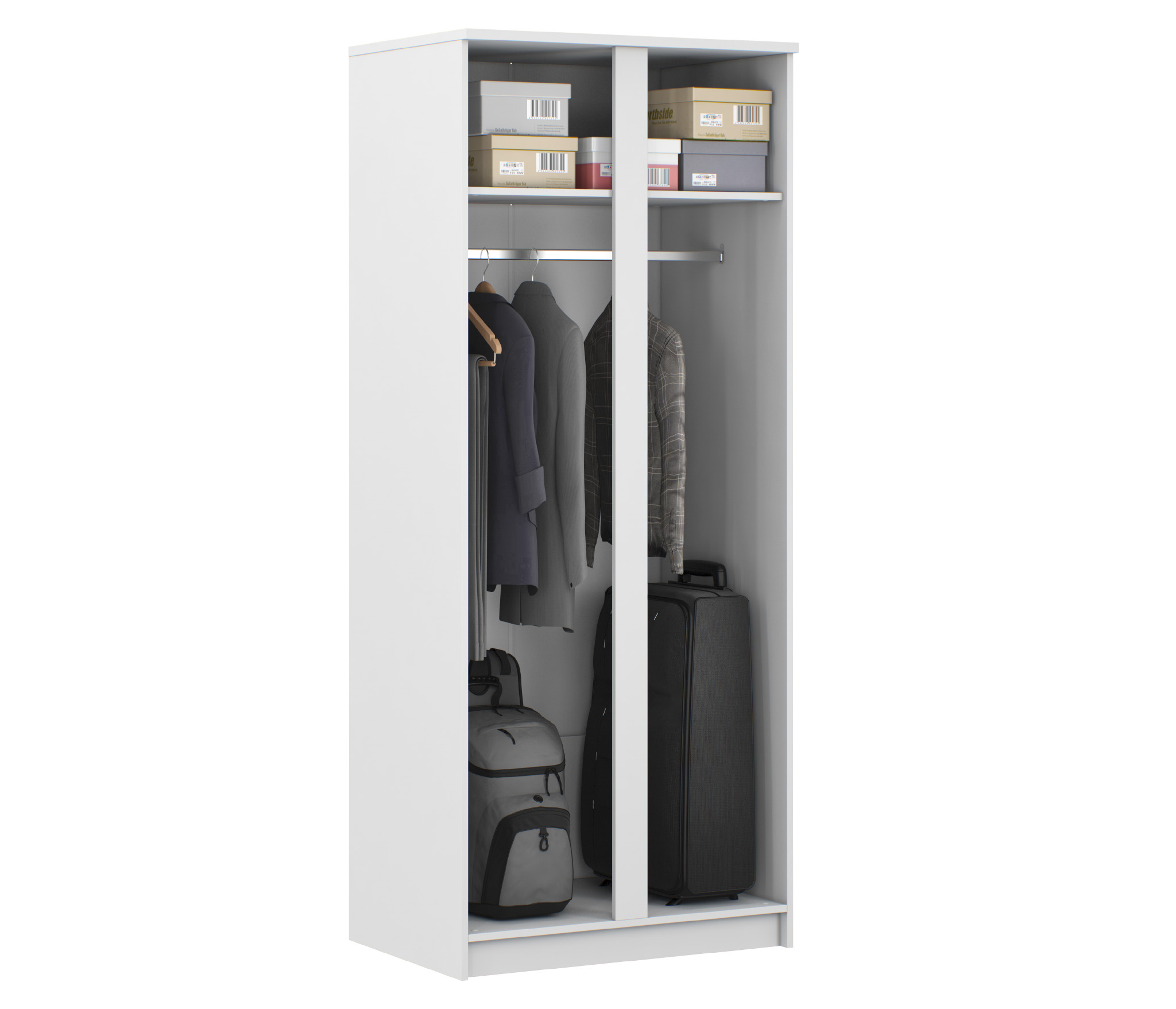 При довольно скромных габаритных размерах – ширина 82 см, высота 200 см и глубина 57 см, шкаф Медея СБ-2309 довольно вместительный. Он имеет одно отделение со штангой для верхней одежды и антресоль.Выполнен шкаф из прочного и современного материала КДСП и ЛДСП. Отделка фасадных поверхностей – белый глянец.Шкаф может использоваться как отдельный предмет мебели, так и в сочетании с другими элементами из коллекции Медея.